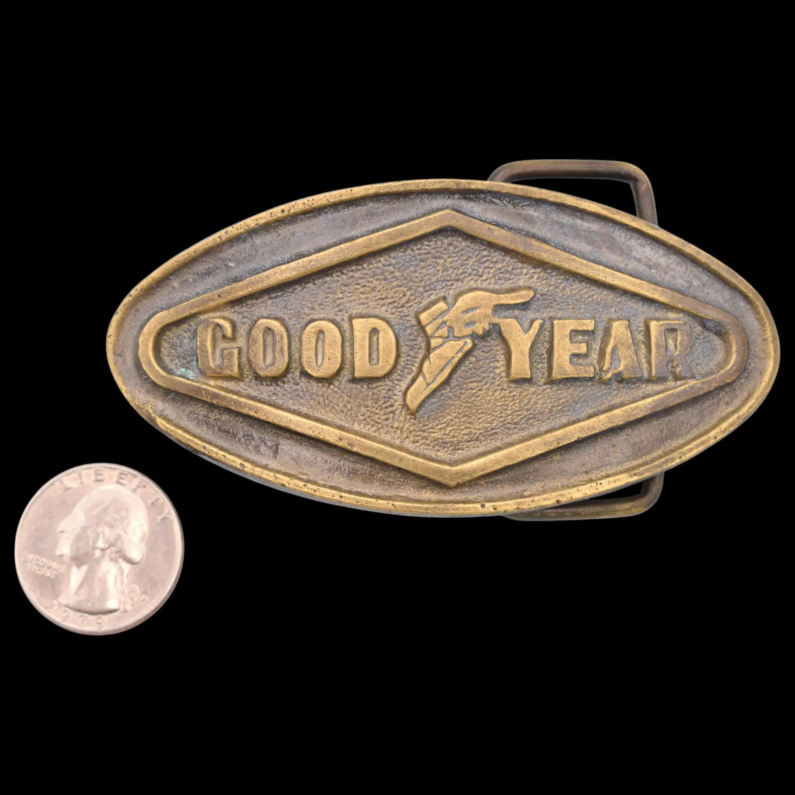 • Goodyear Tires Solid Brass Vintage Belt Buckle by BBB Baron ca. 1970s