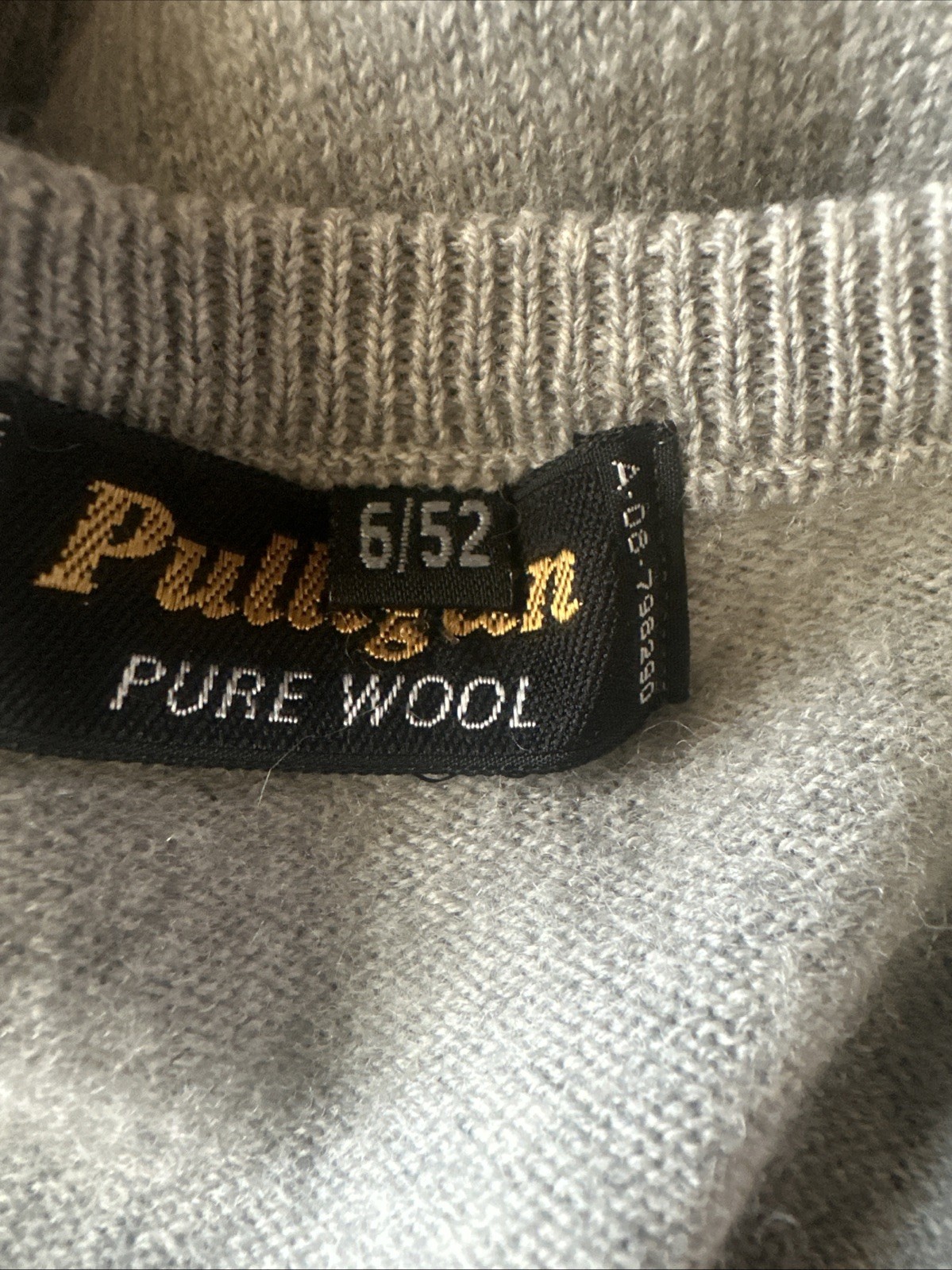 PULLIGAN Mens Light Gray Pure Wool Classic V-Neck Sweater Vest 6/52 Medium SPAIN