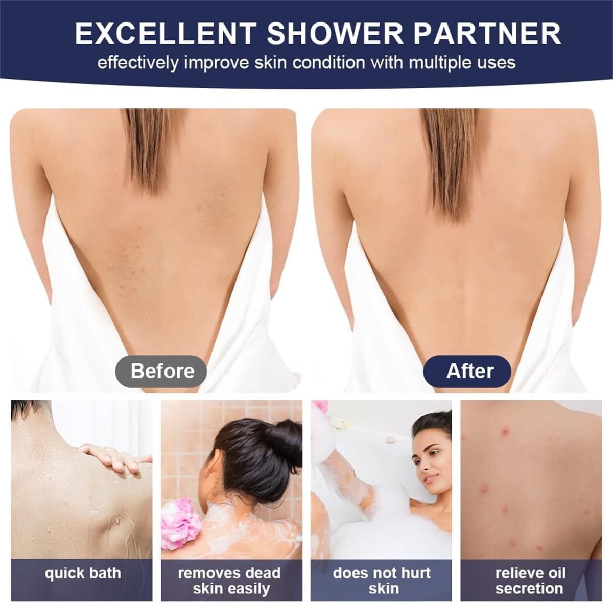 Exfoliating Back Scrubber for Shower, 34 Inches Back Scrubber with Handles, D...