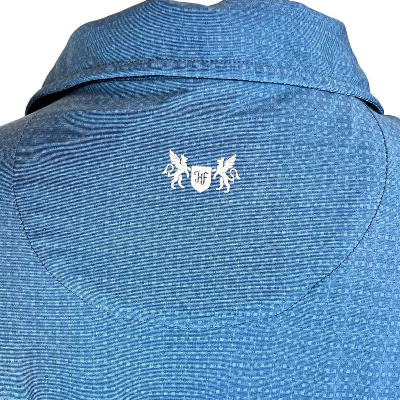 как выглядит HICKEY FREEMAN Golf Blue Short Sleeve Collared Polo Shirt Sz XL Stretch Print фото