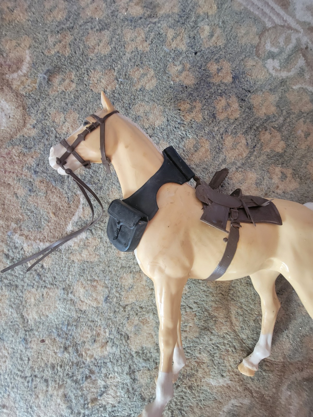 как выглядит Vintage 1967 Marx THUNDERBOLT Palomino Horse Saddle W Accessories Johnny West фото