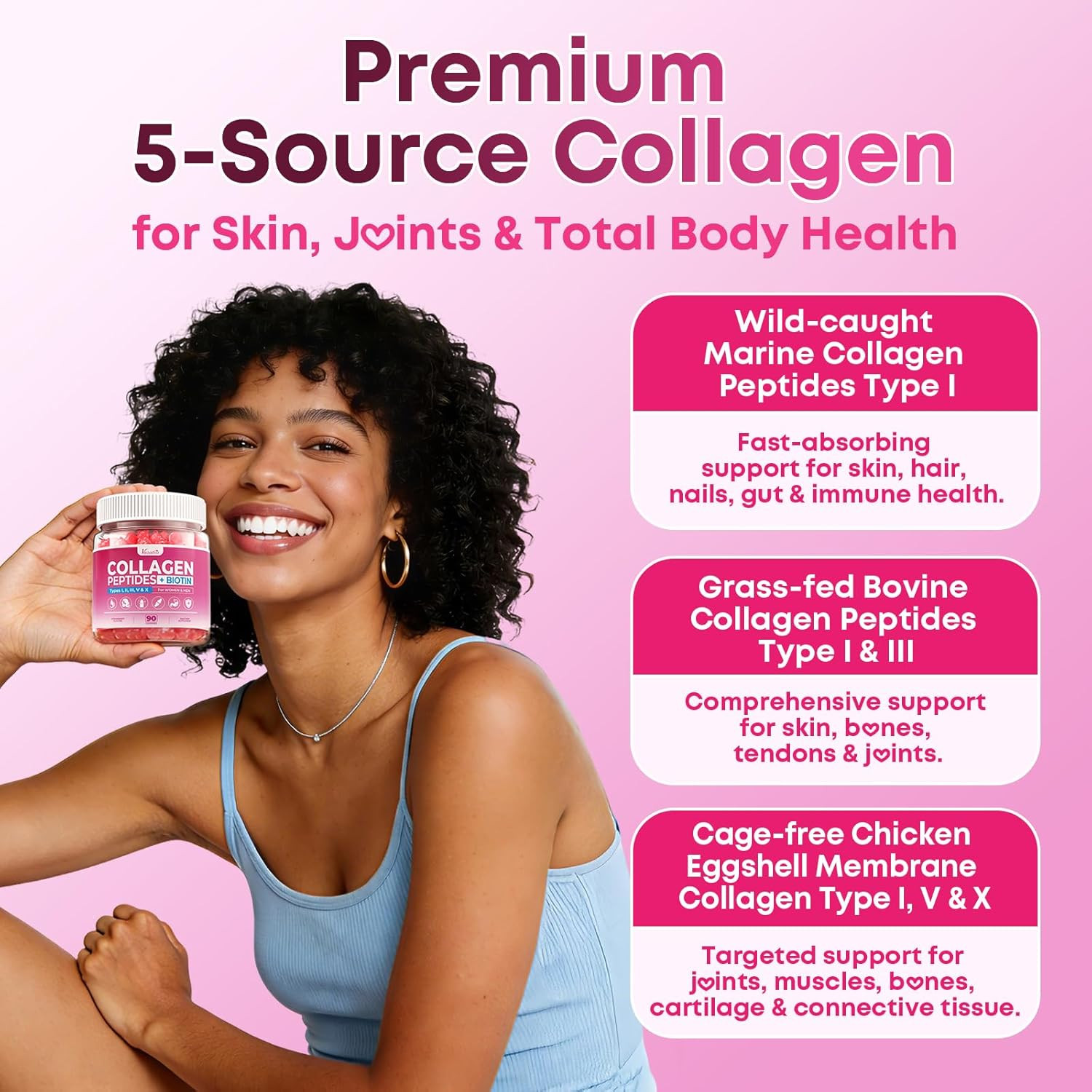 Sugar Free Collagen Gummies for Women Men with Hydrolyzed Collagen Peptides, B