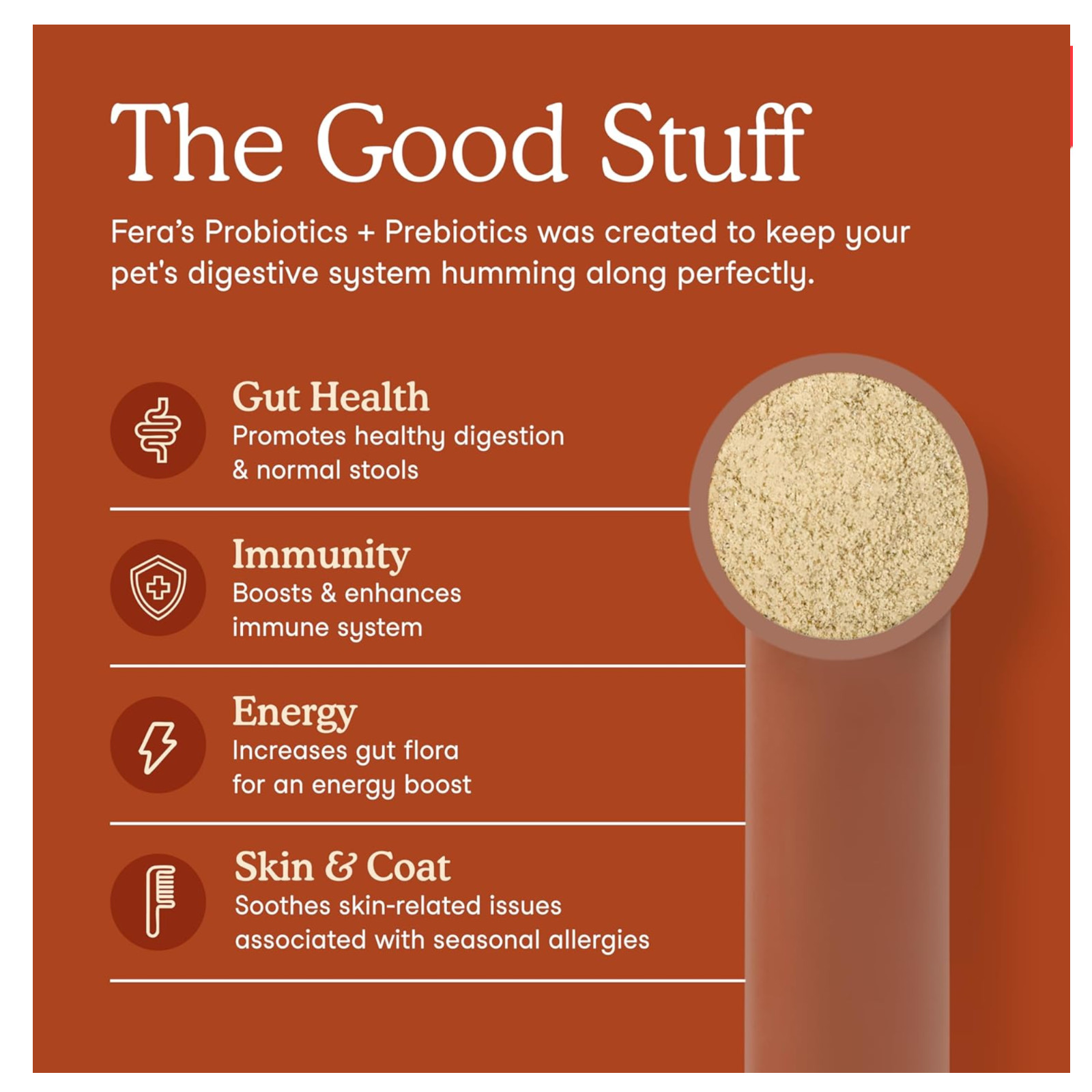 Fera Pets Probiotics for Dogs Cats with Prebiotics - USDA Organic - 60 Scoops