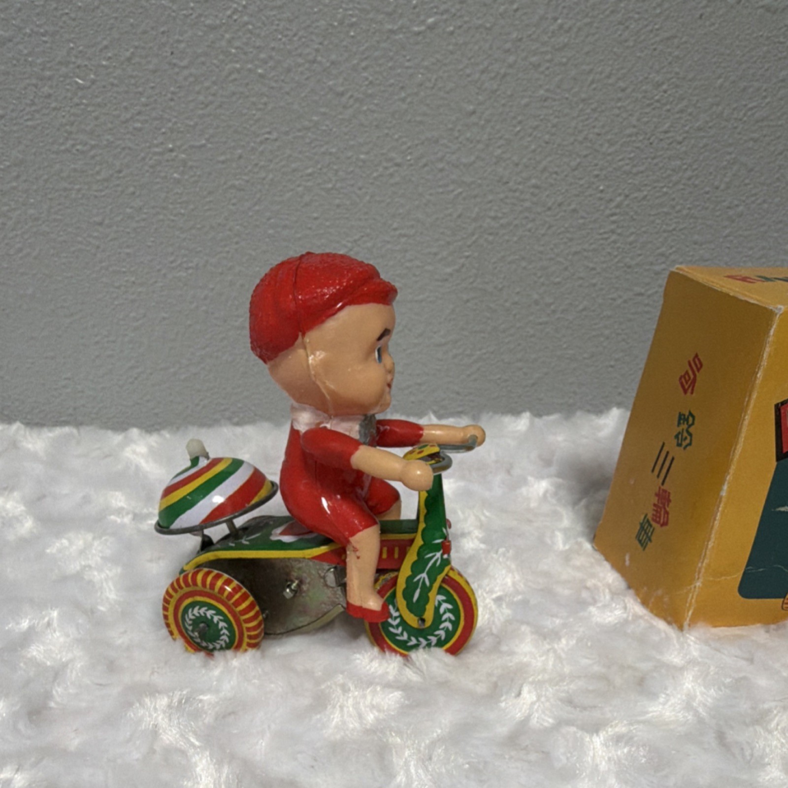 Vintage Ringing Tricycle Wind-up Tin Toy with Box