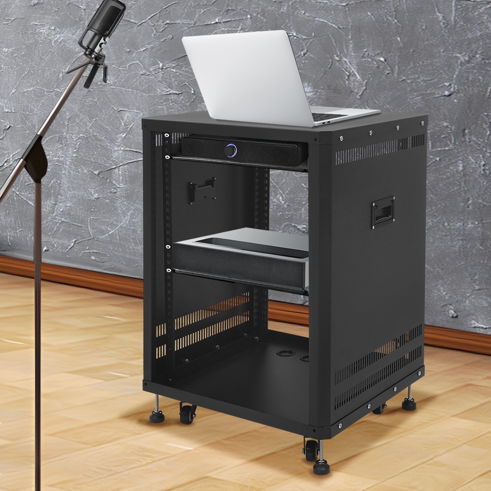 19'' 15U AV Equipment Rack w/ Caster Wheels Universal Network Stereo Stand