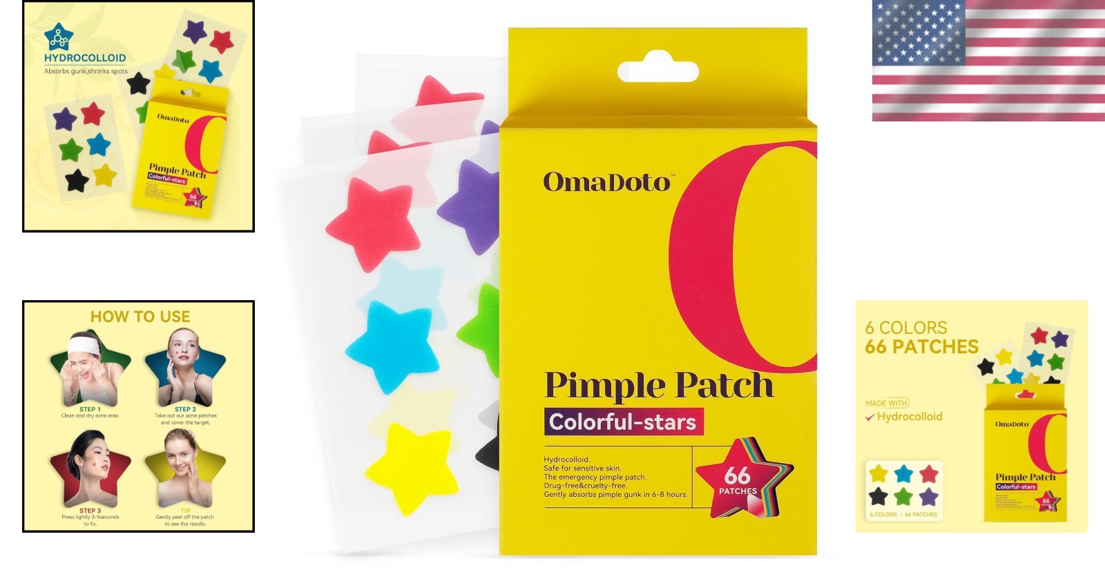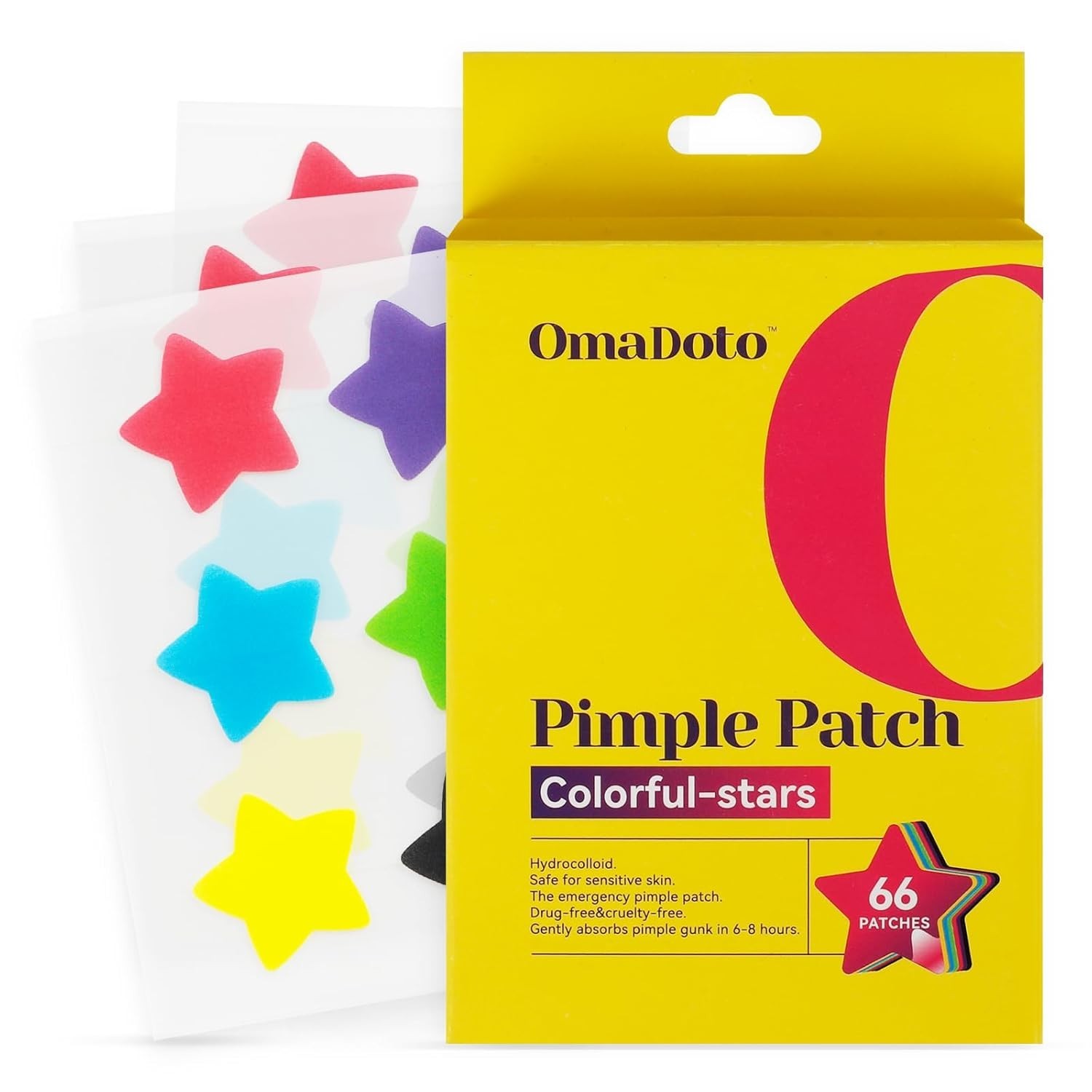 Colorful Star Pimple Patches - 66 Hydrocolloid Acne Stickers 14mm for Face