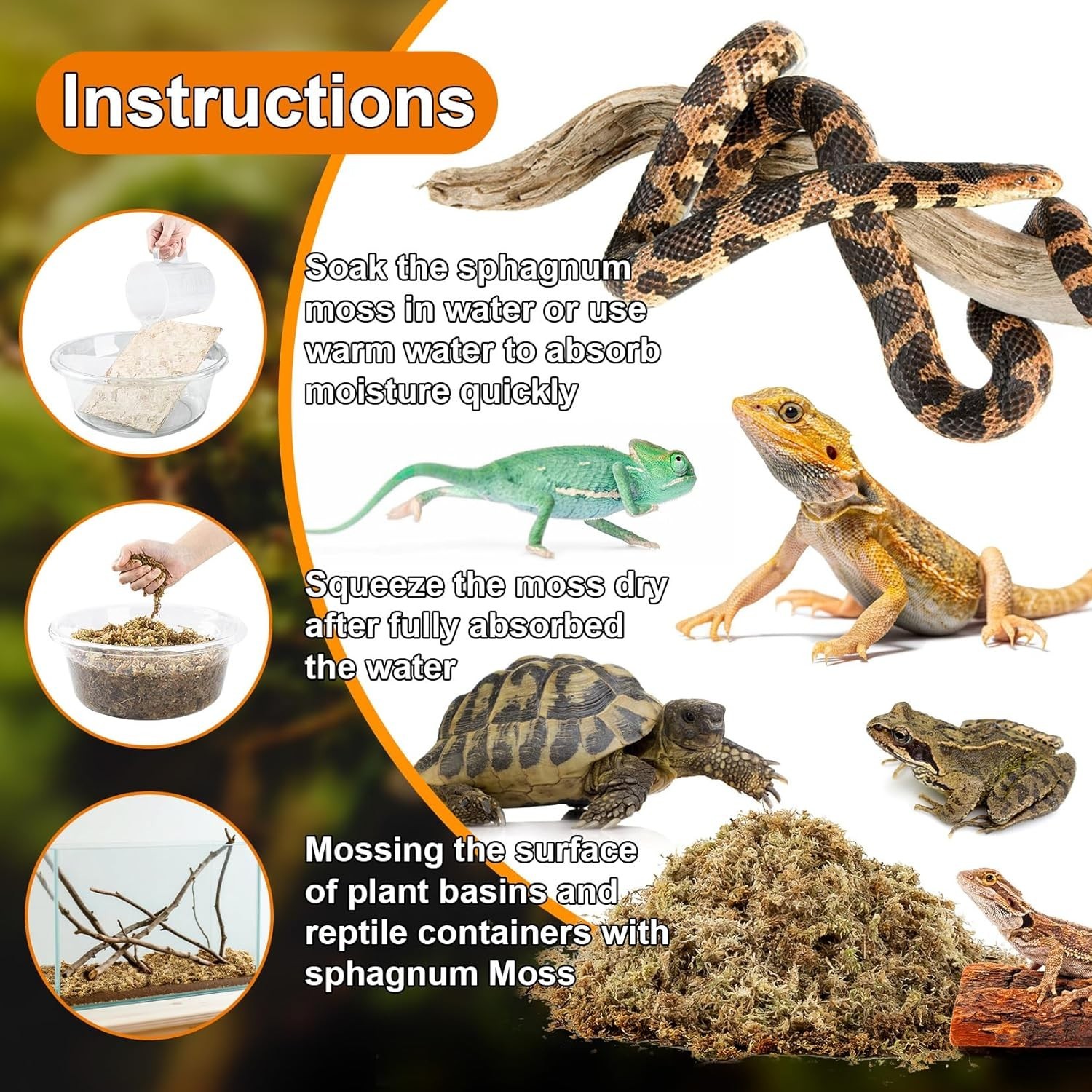High Moisture Retention Sphagnum Moss for Reptiles - 3.5 oz for Ideal Habitats