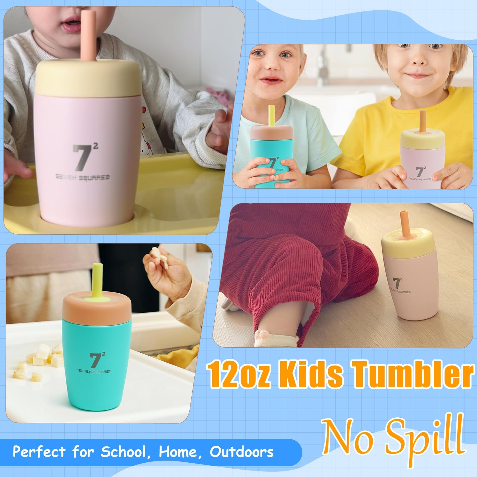 12oz Tumbler Spill Resistant with Lid and Silicone Straw, Insulated Sippy Cup...
