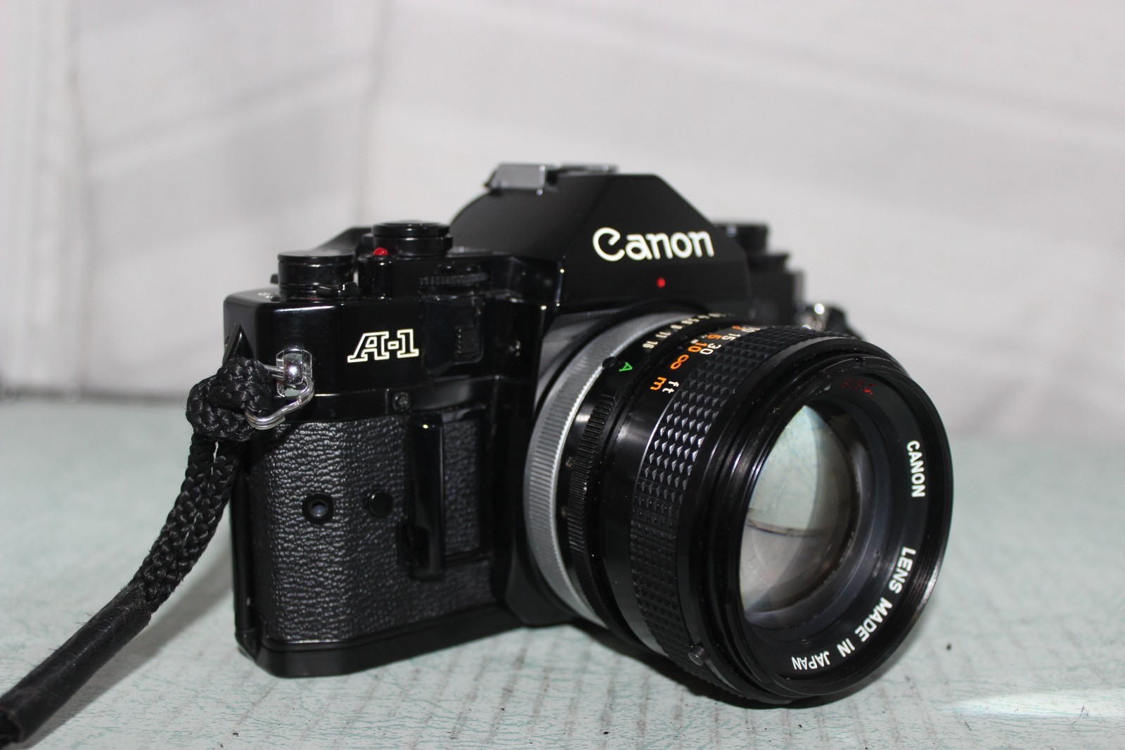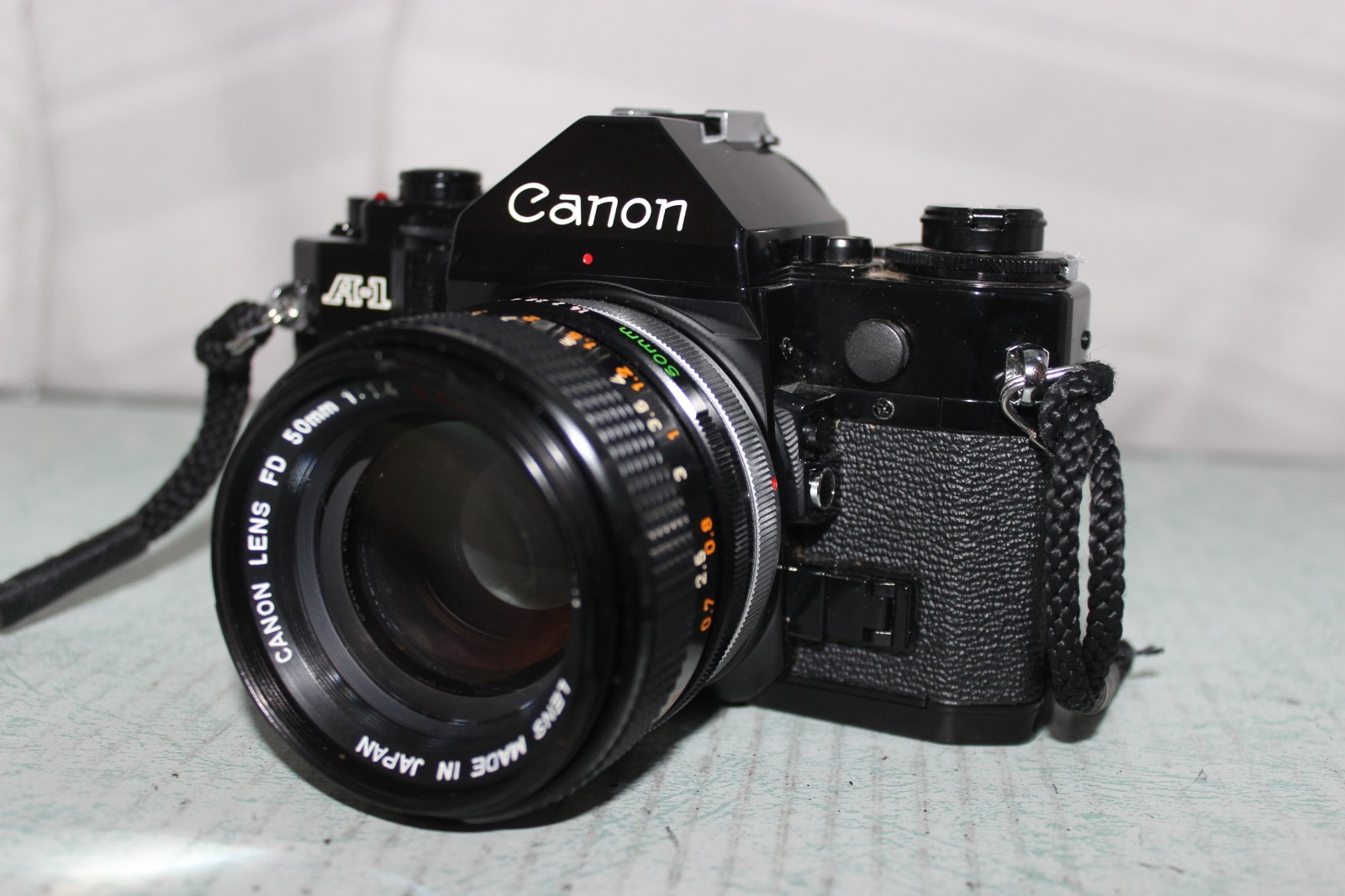 Exc Canon A-1 Black 35mm Film Camera w/FD 50mm f/1.4 S.S.C. From Japan
