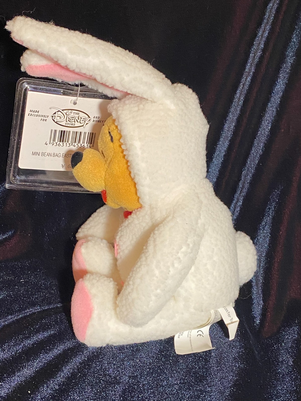 Vtg Disney Winnie the Pooh WHITE CURLY EASTER BUNNY Bean Bag Plush Fur Beanie