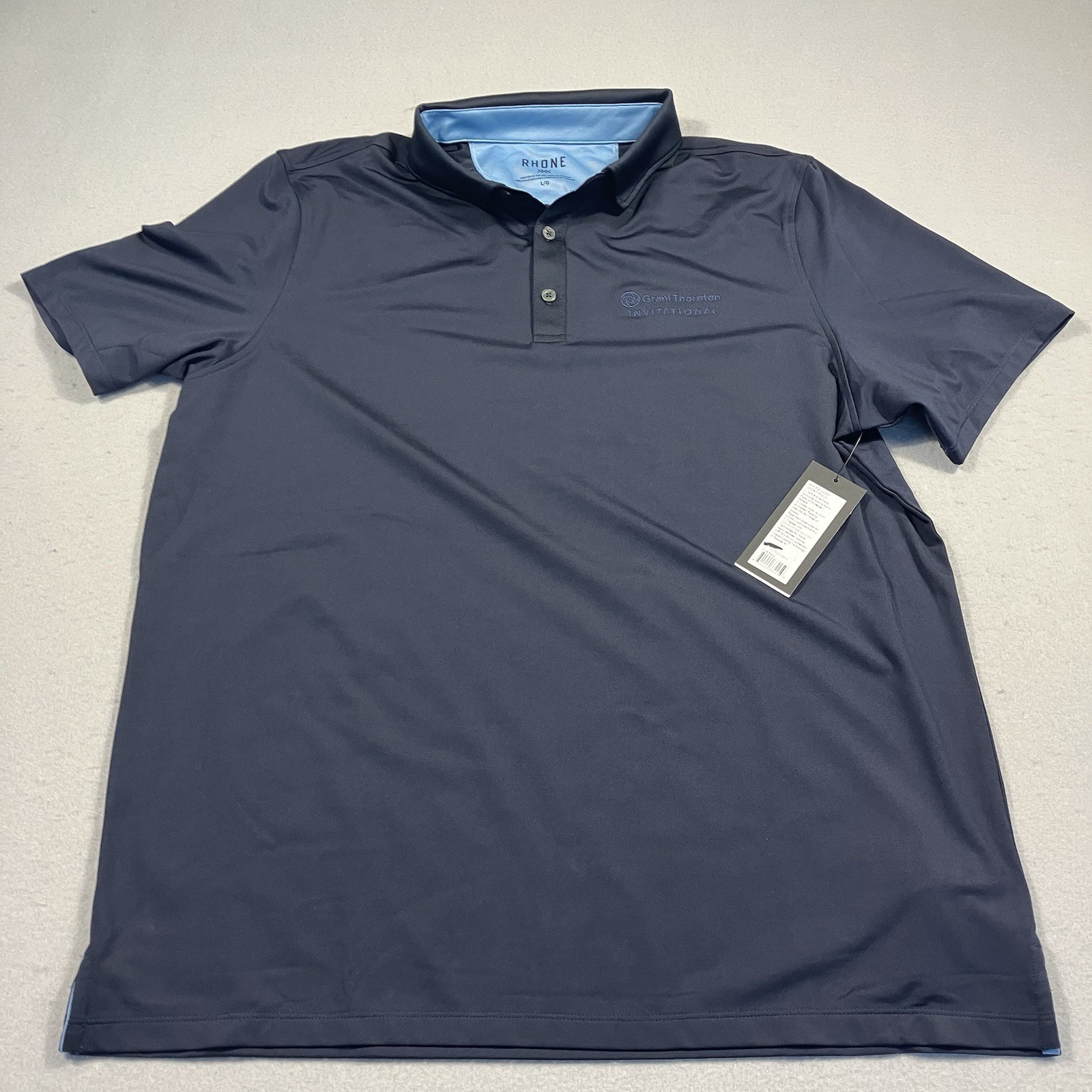 NWT Rhone Polo Shirt Men's Large Navy Blue Golf Grant Thornton Invitational Logo