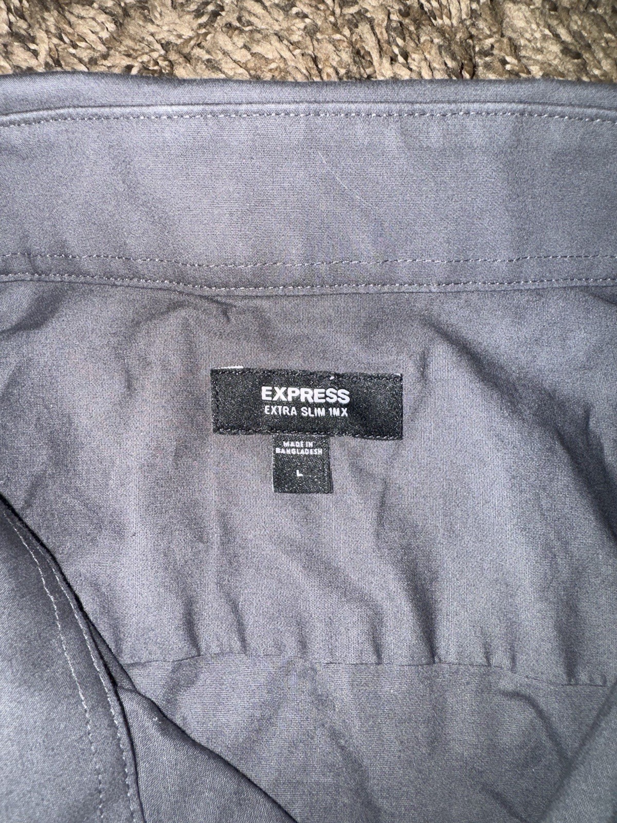 Express Extra Slim Fit Gray Dress Shirt Men s Long Sleeve Collared Size L