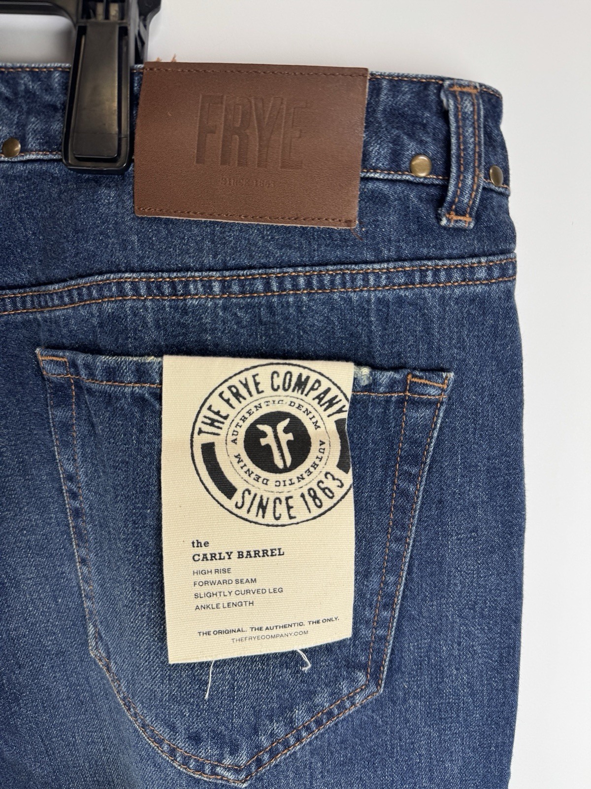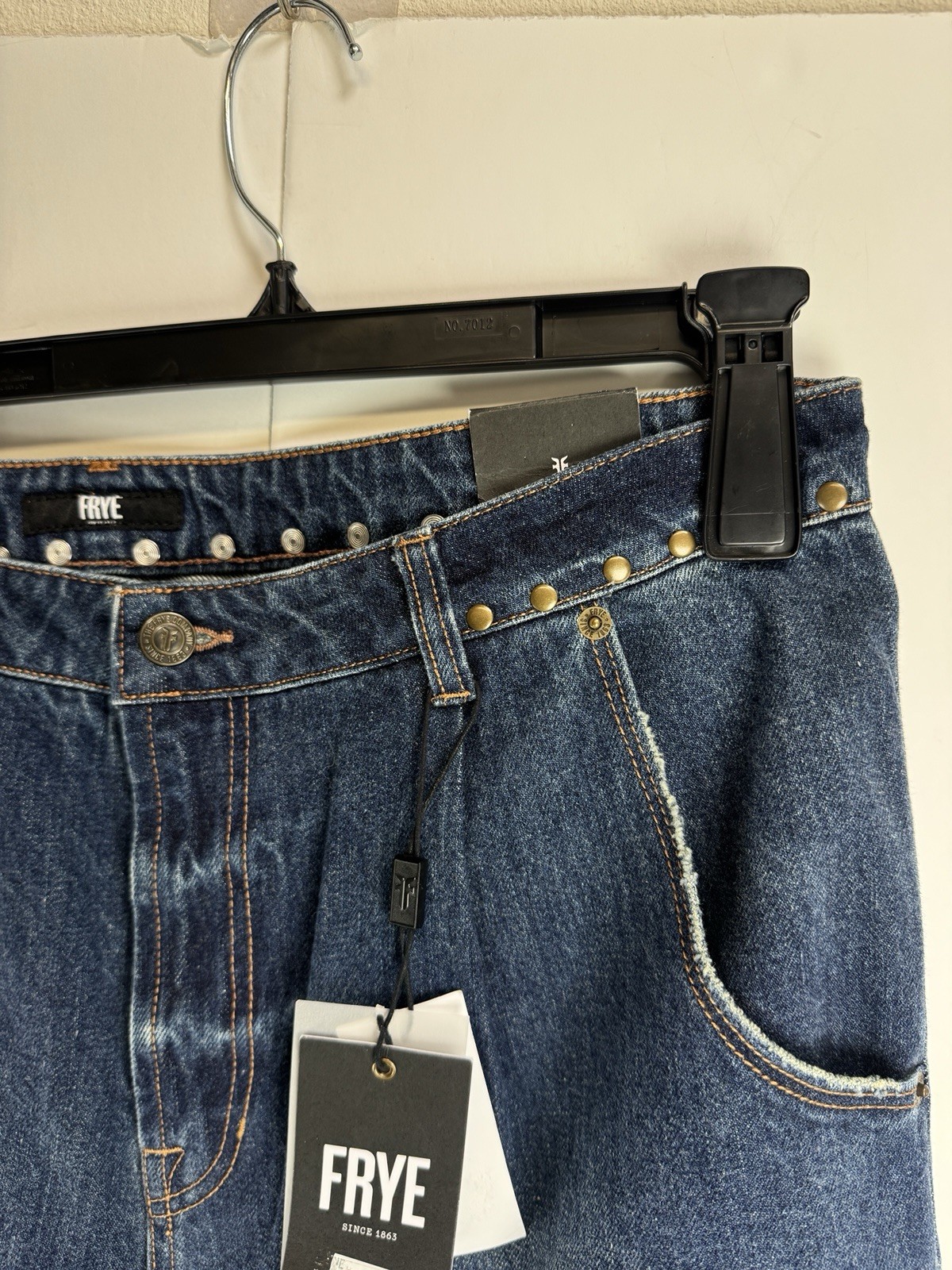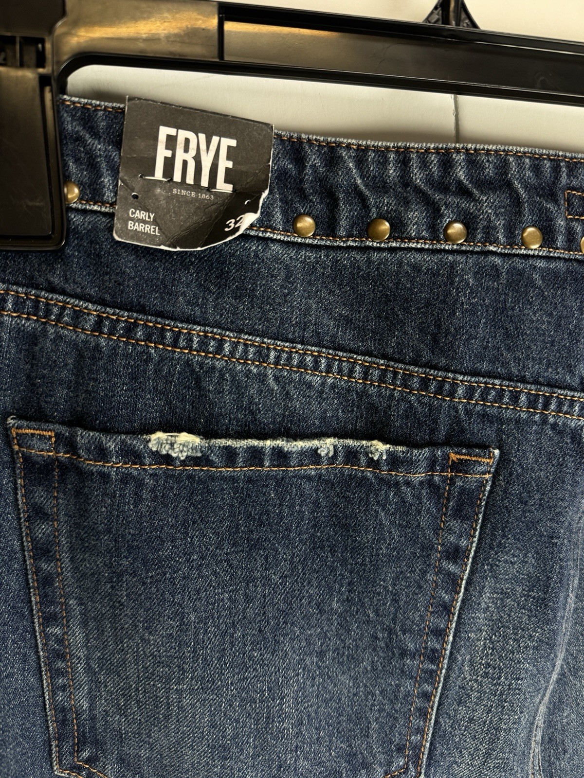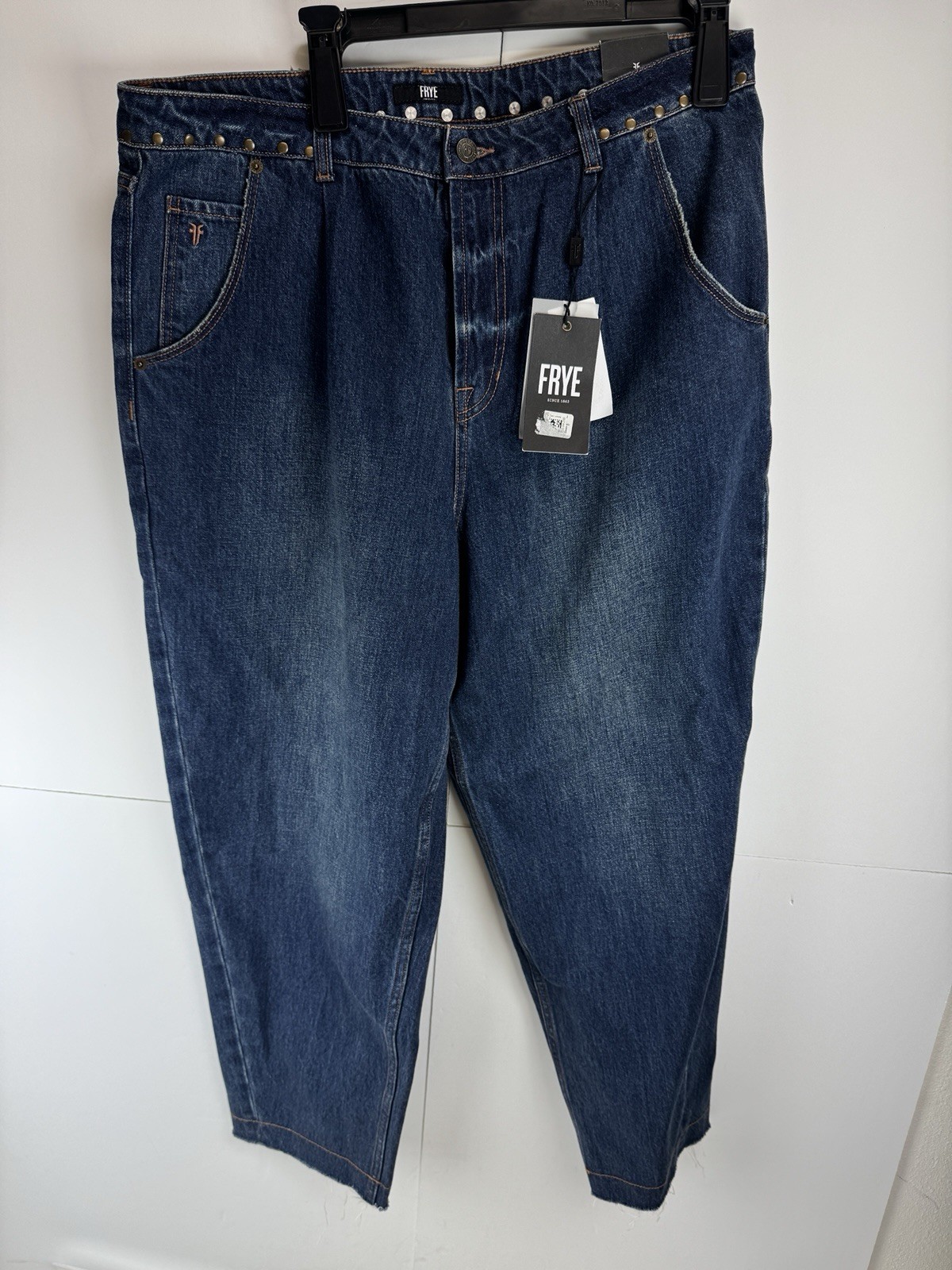 как выглядит Frye Womens Studded-Waist Barrel-Leg Cotton Denim Jeans Sz:32 фото
