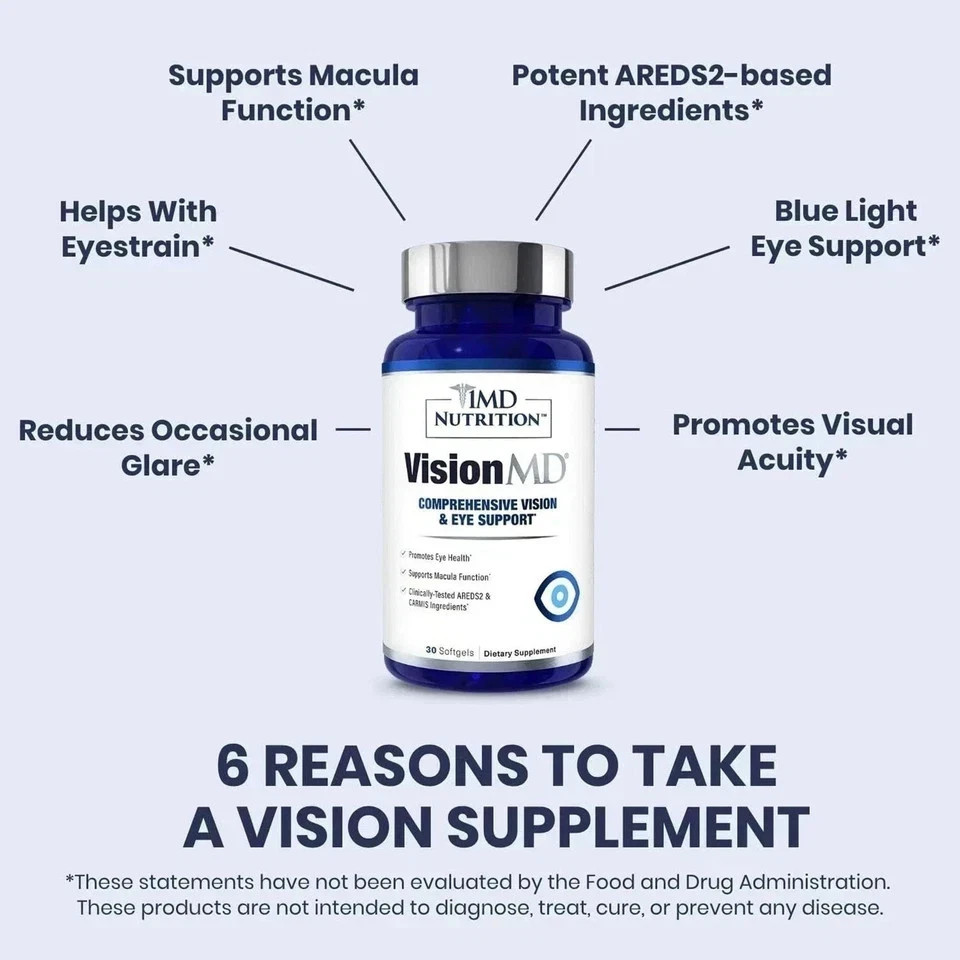 1MD Nutrition Vision MD Eye Vitamin CARMIS Eye Supplement 30 Softgels - New