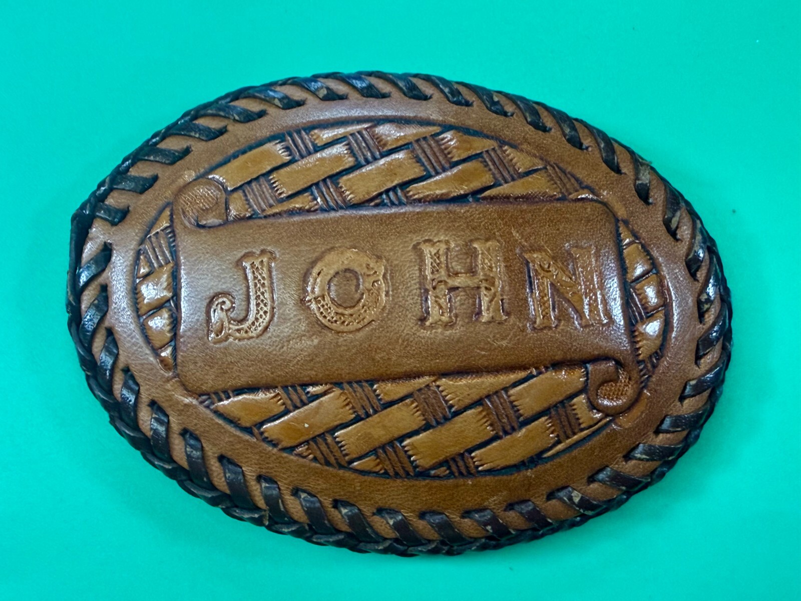 Custom Name JOHN Hand Stitched Embossed Leather Vintage Belt Buckle