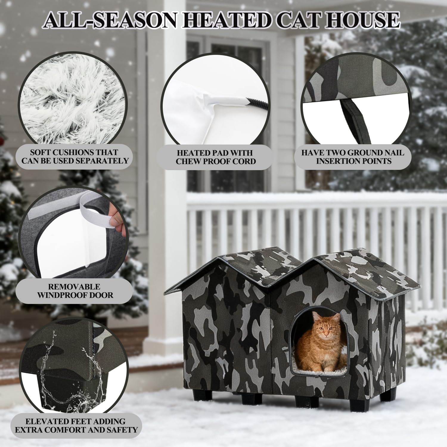 Heated Outdoor Cat House, Insulated Elevated Cat House Weatherproof for Outsi...