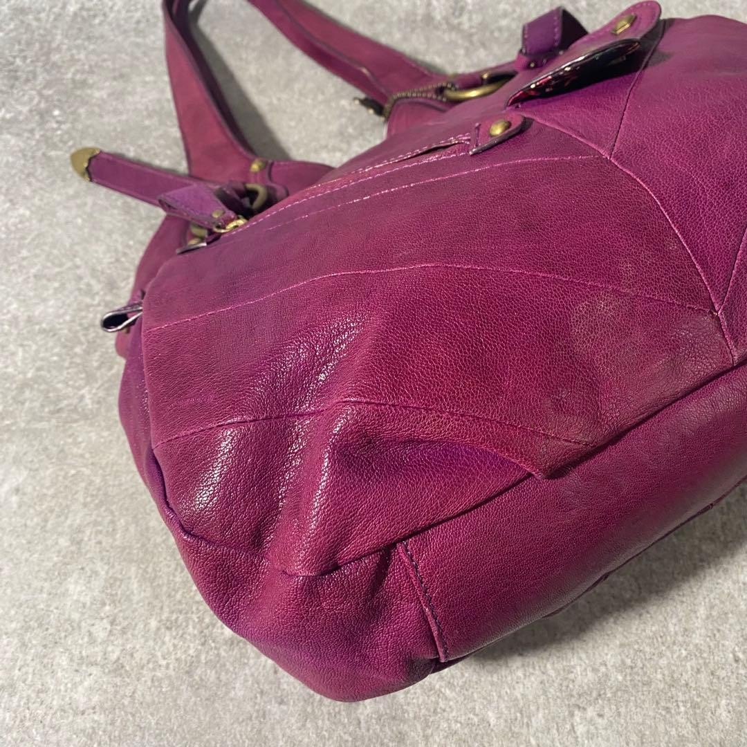 как выглядит ANNA SUI Y2K Tote Bag Genuine Leather Purple Shoulder Bag Stylish Auth фото