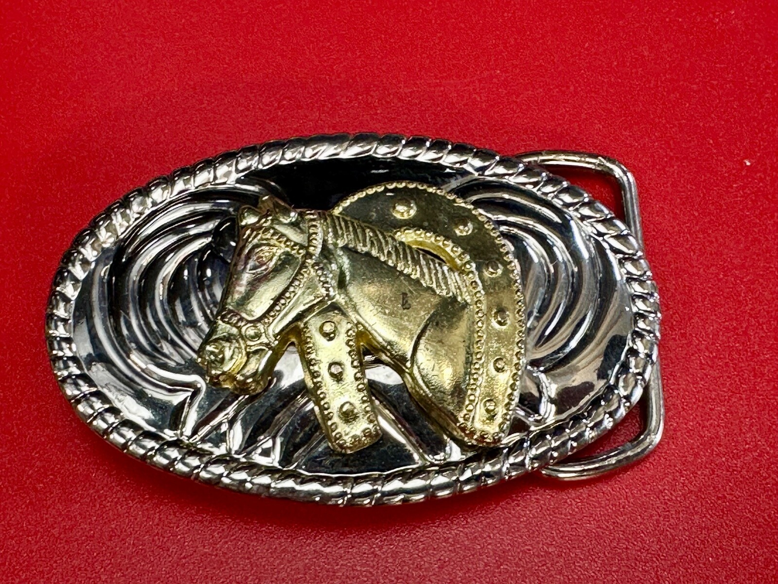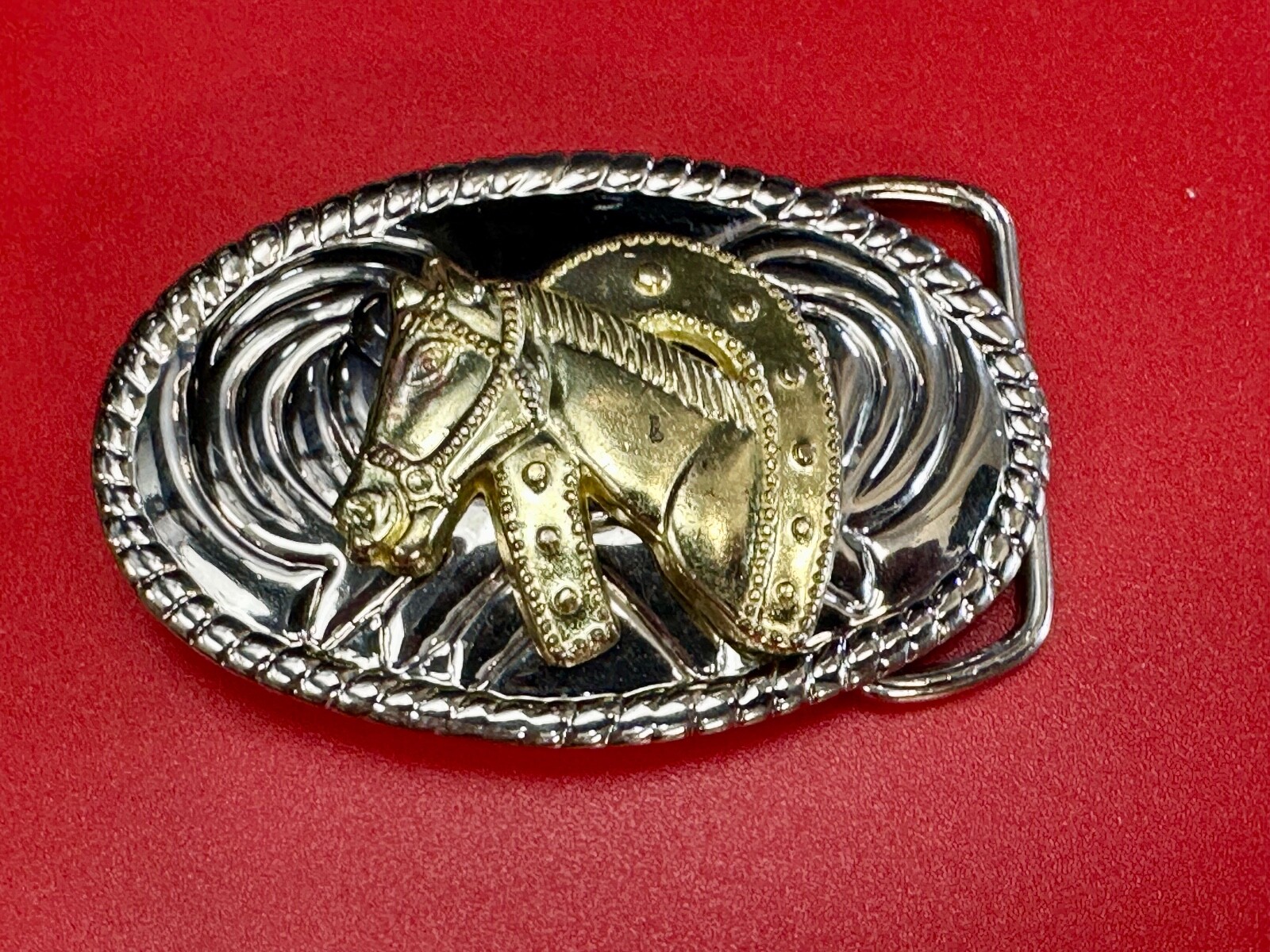 • Beautiful Nos Horse Head / Lucky Horseshoe - Small Two Tone Oval Belt Buckle