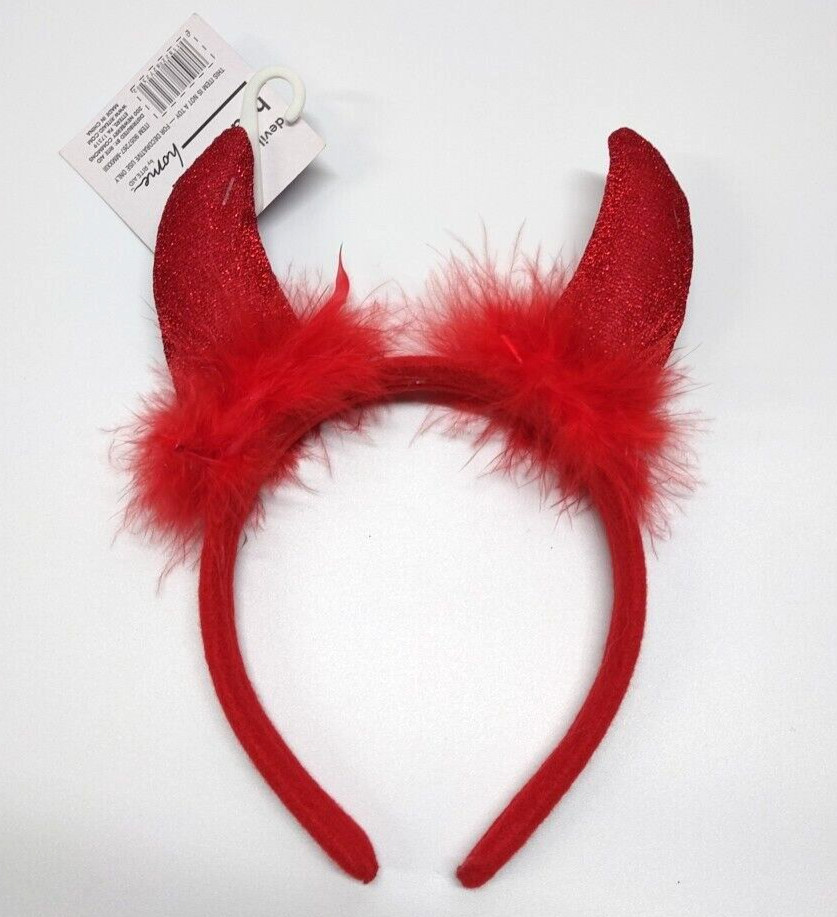 Kids Halloween Red DEVIL HEADBAND Horns w/ Feathers Costume Accessories