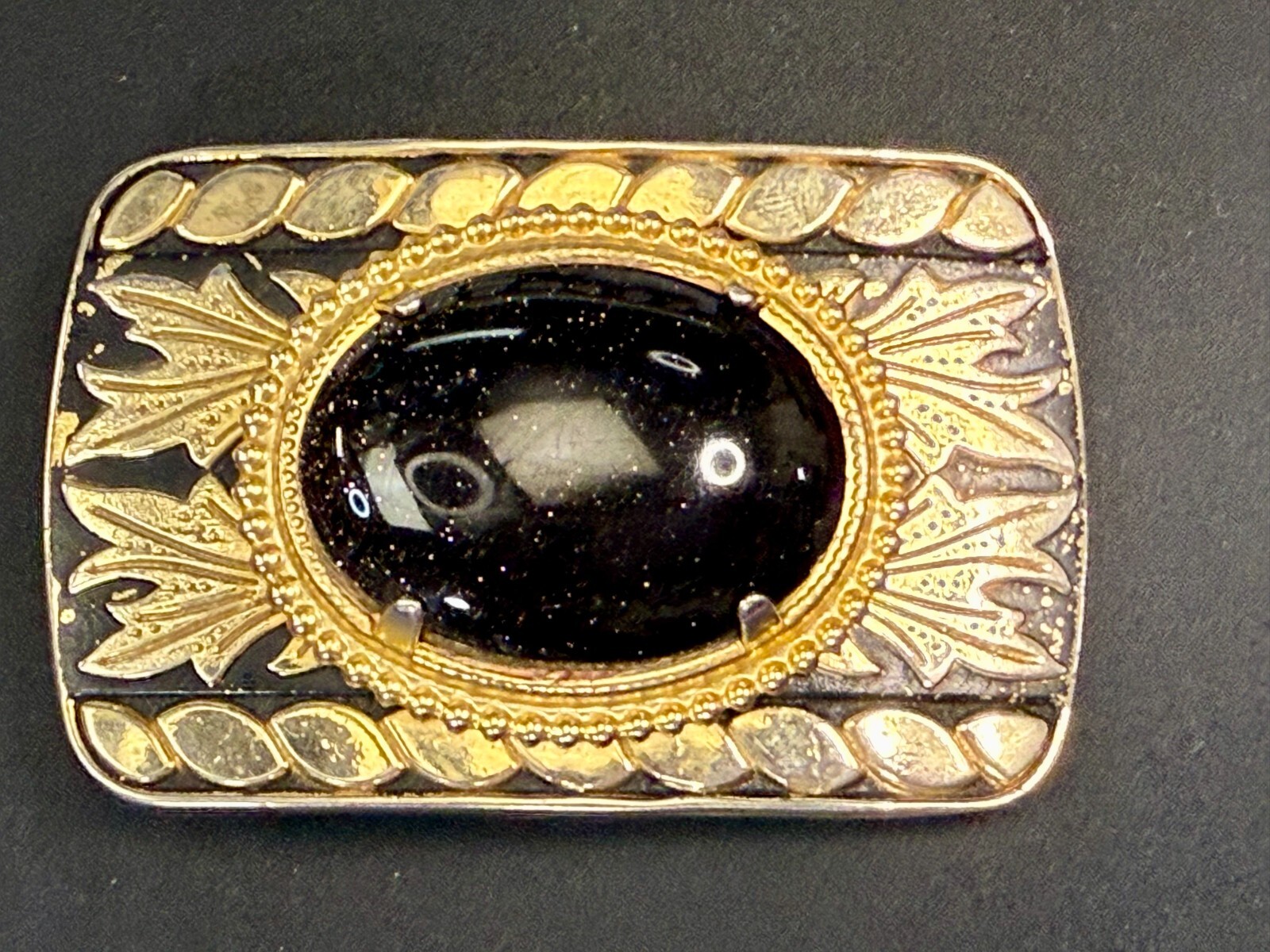 Black Aventurine Glass Cabochon Cab On Gold Black Color Vintage Belt Buckle