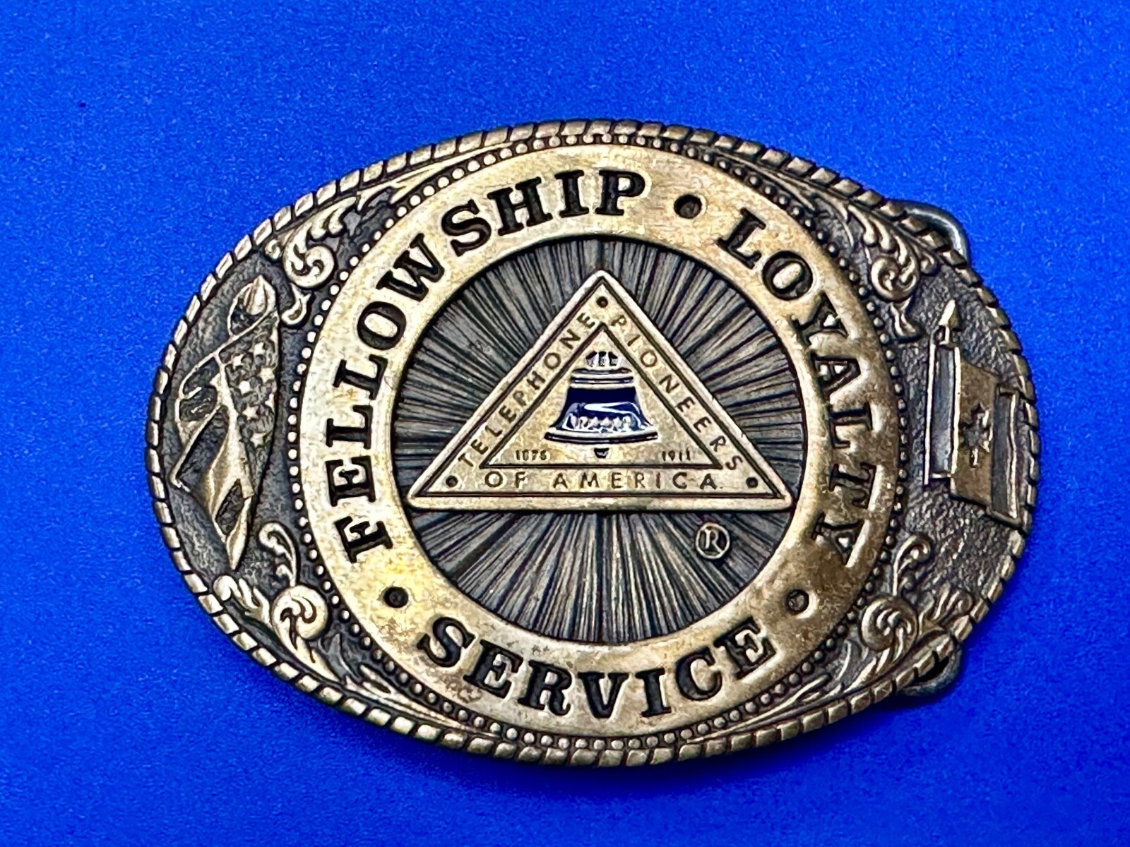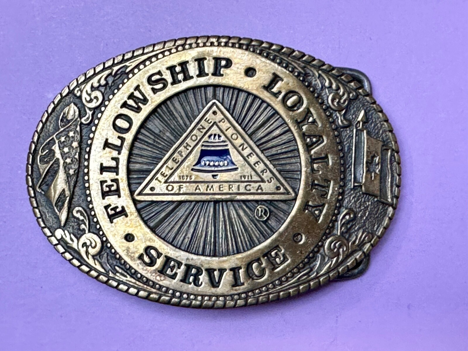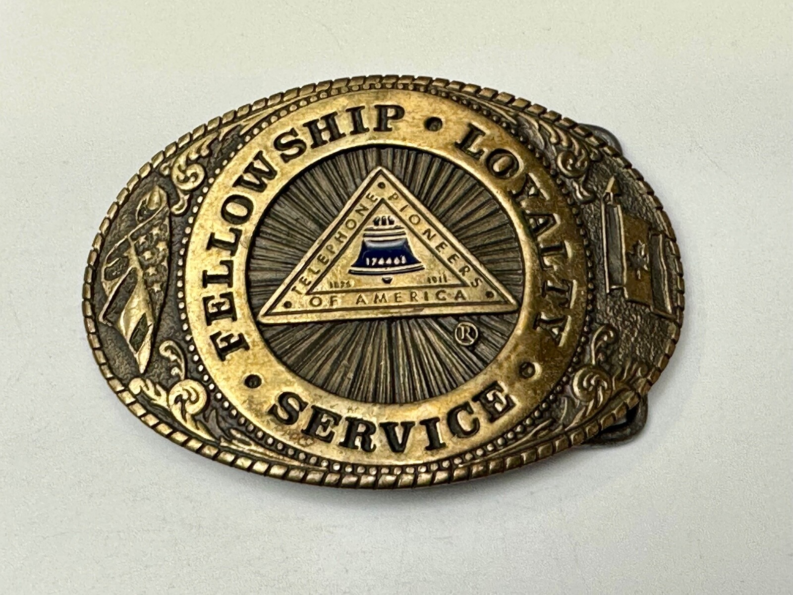 как выглядит Telephone Pioneers Of America Tl B Belt Buckle Fellowship Loyalty Service фото