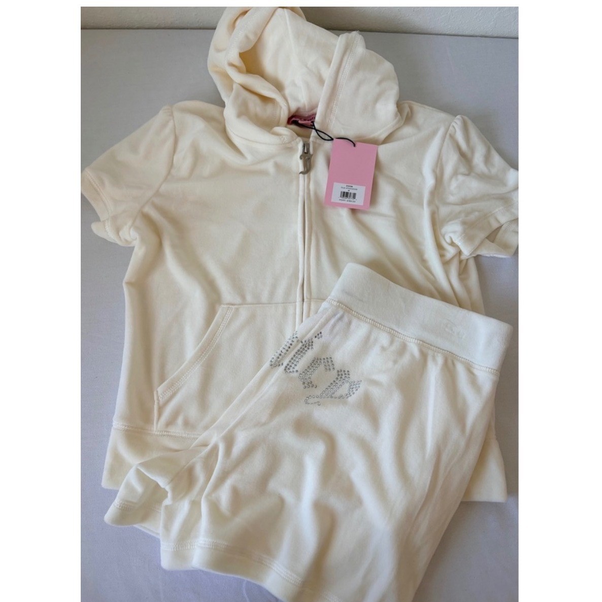 Juicy Couture oyster Velour Short Sleeve Hoodie and Shorts Set Rhinestone Logo m