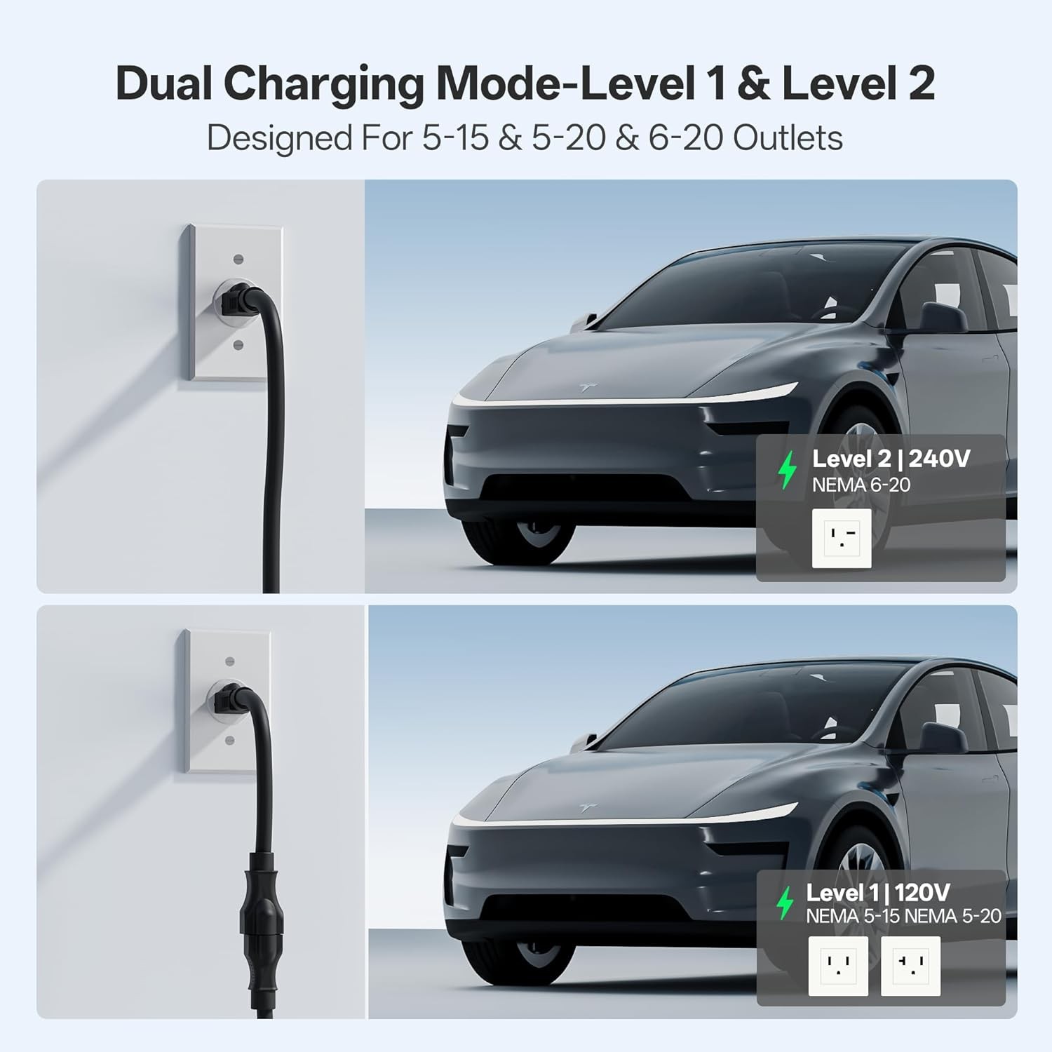 Level 1 2 EV Charger,Tesla EV Charger NACS 16A with 25FT Extension Cord Cable,Po