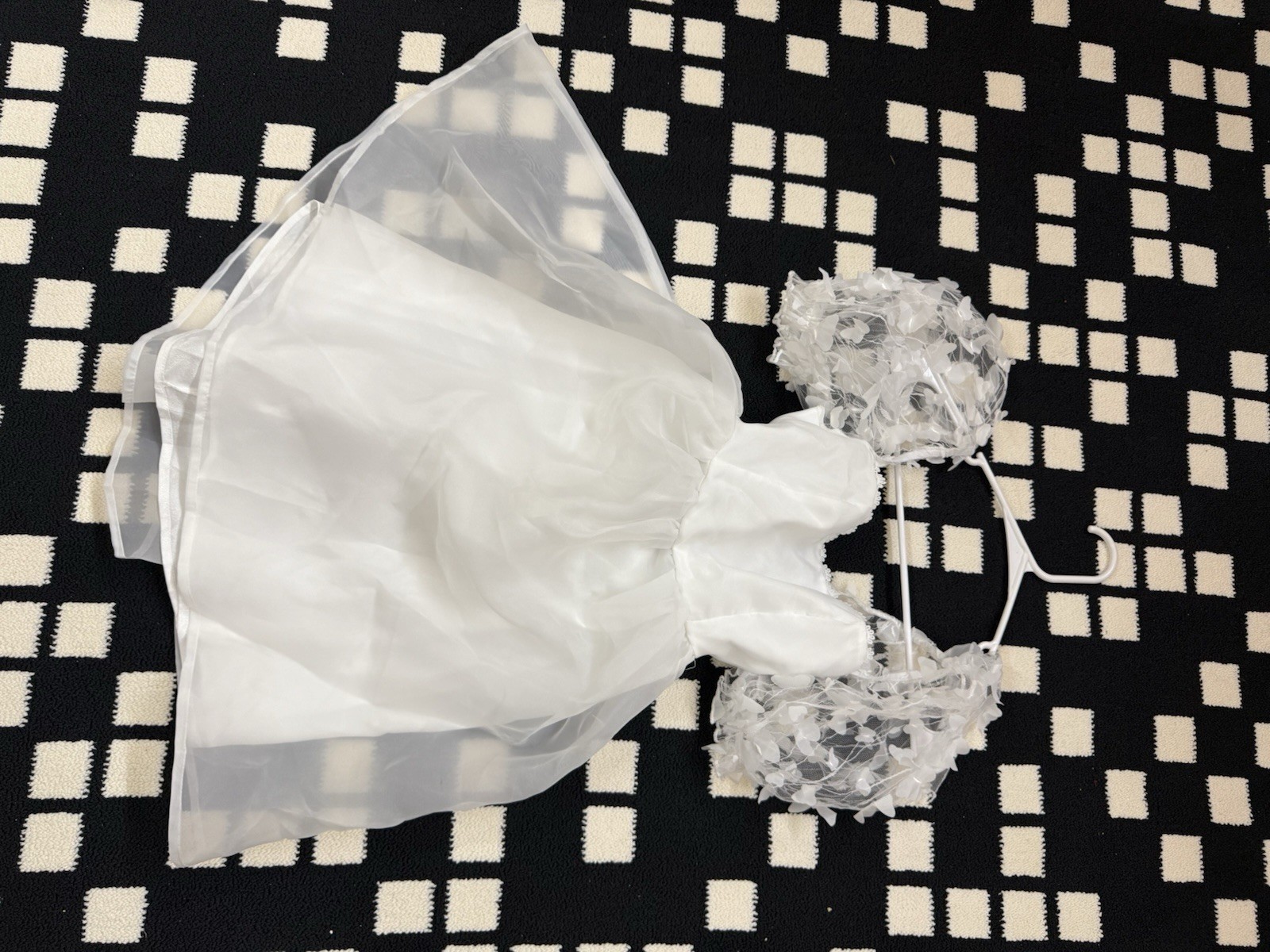 как выглядит White Girls Tutu Dress Puff Sleeve Floral Appliqu Organza Party Formal фото