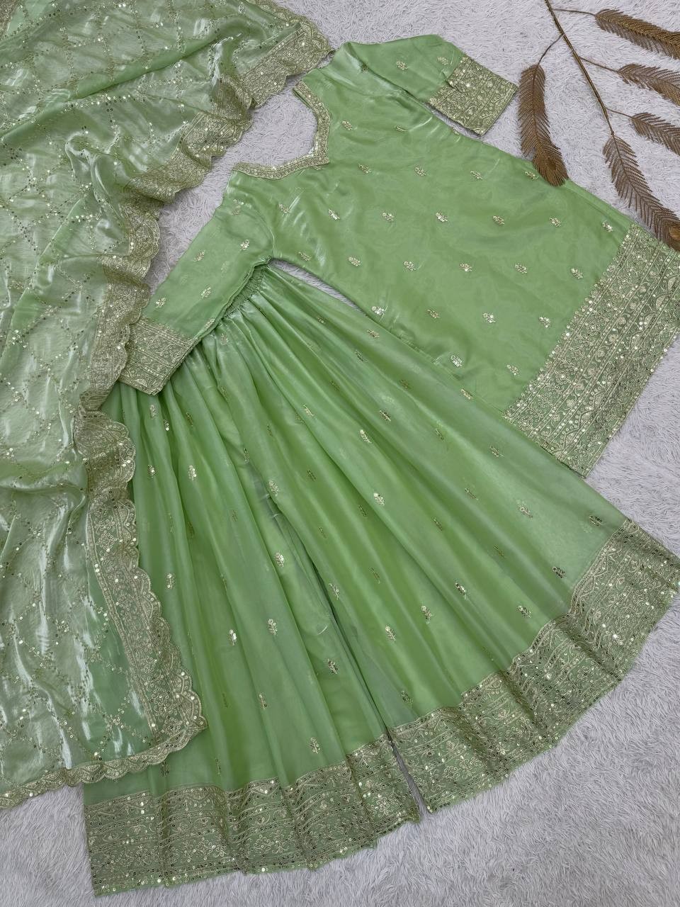 PLAZZO WORK: HEAVY EMBROIDERY AND SEQUINS WORK