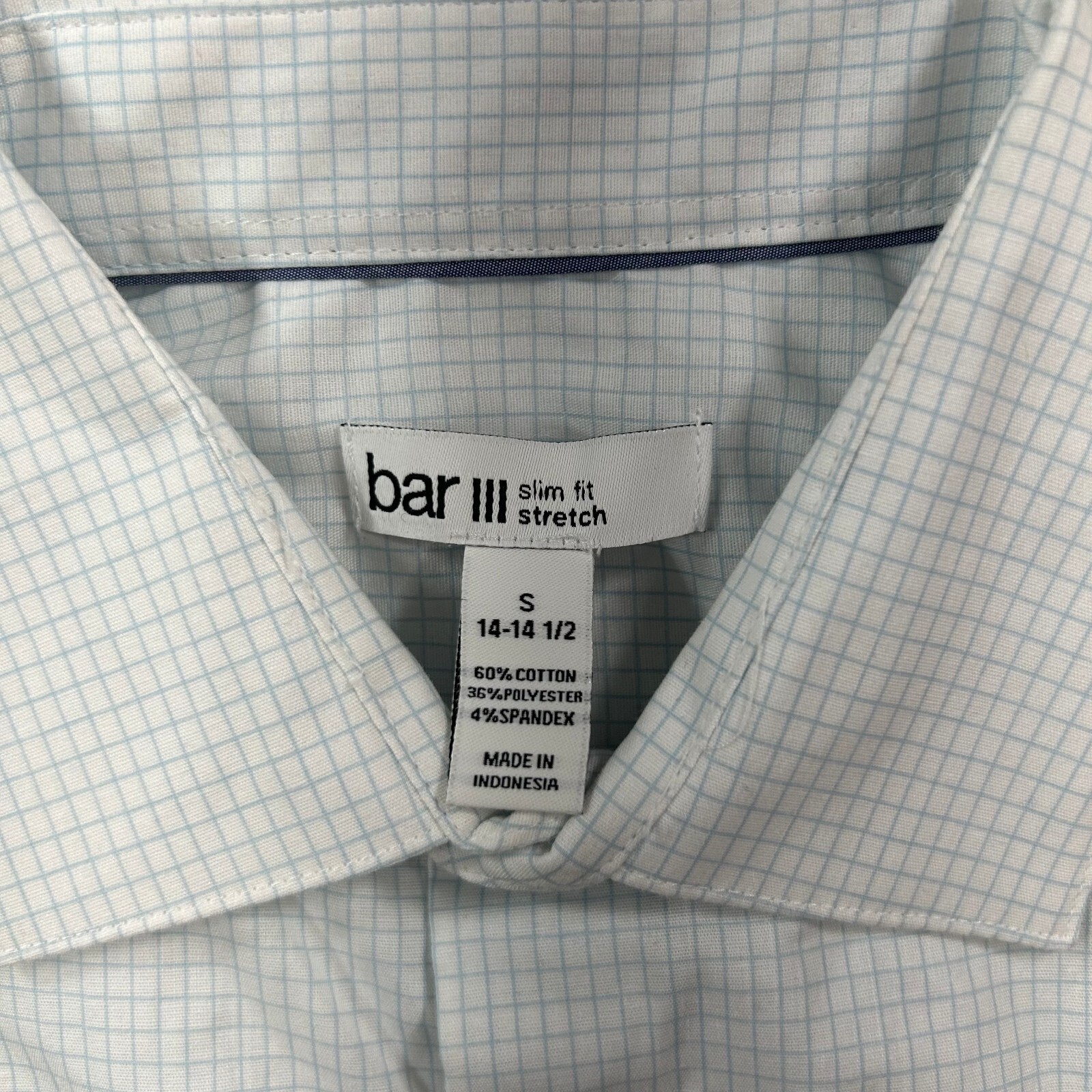 как выглядит Bar III Slim Fit Dress Shirt Mens Small 14-14.5 Light Blue White Grid Print NEW фото