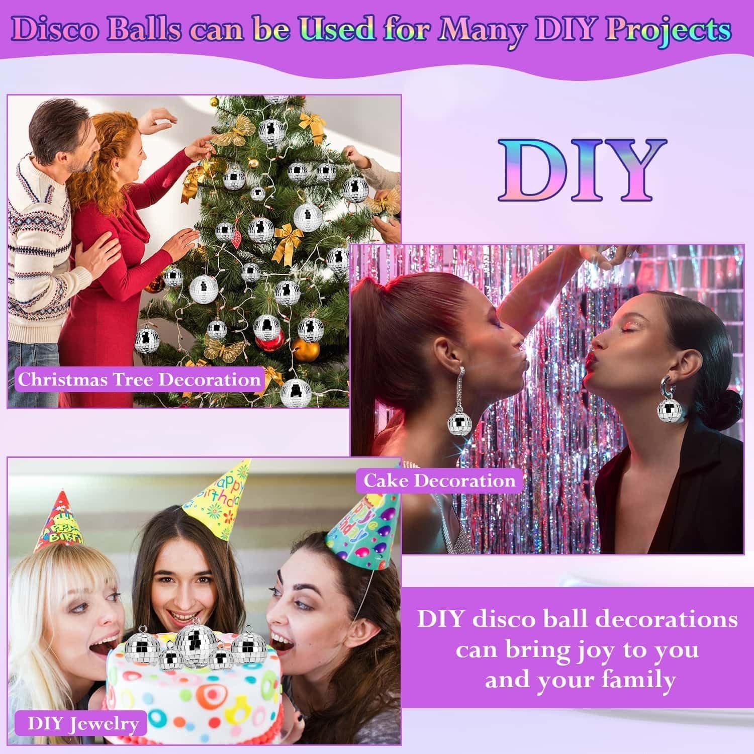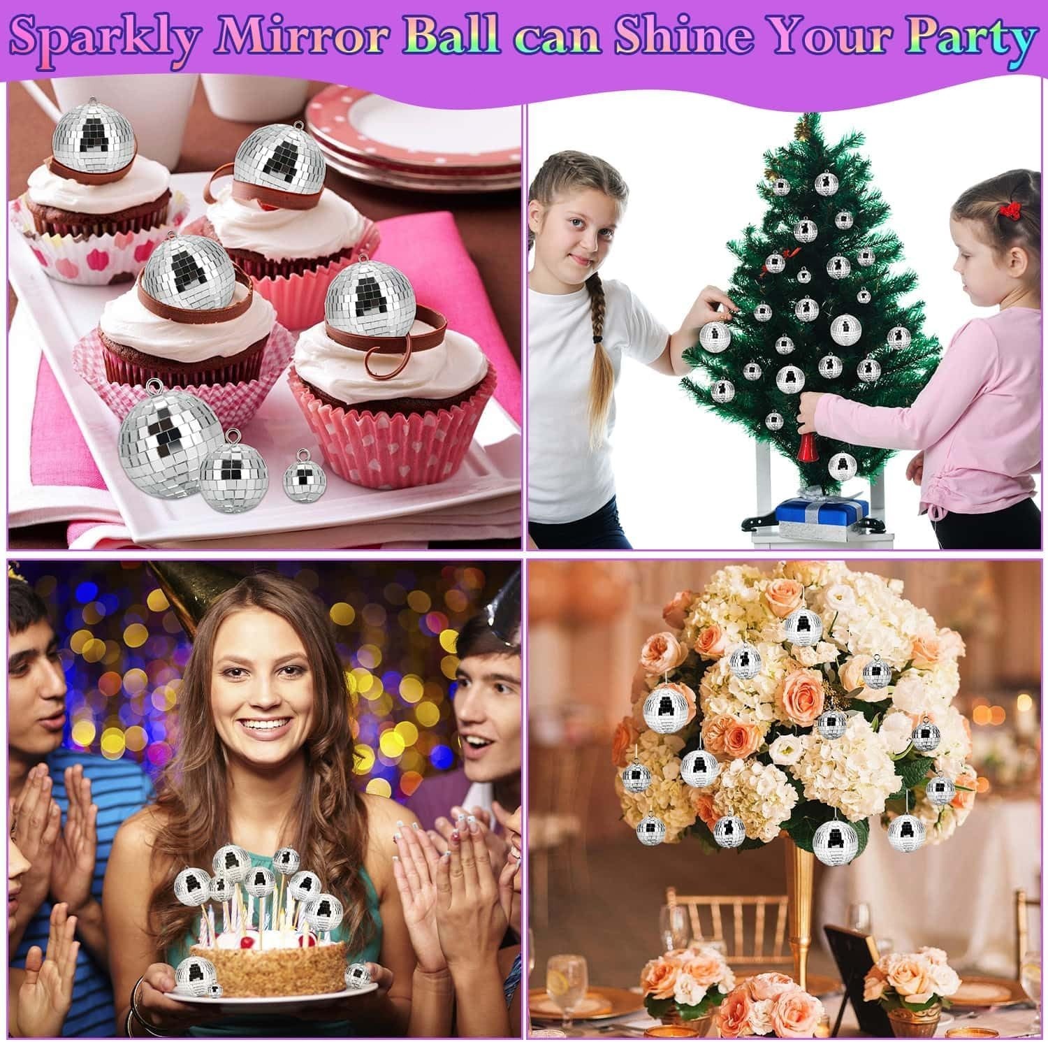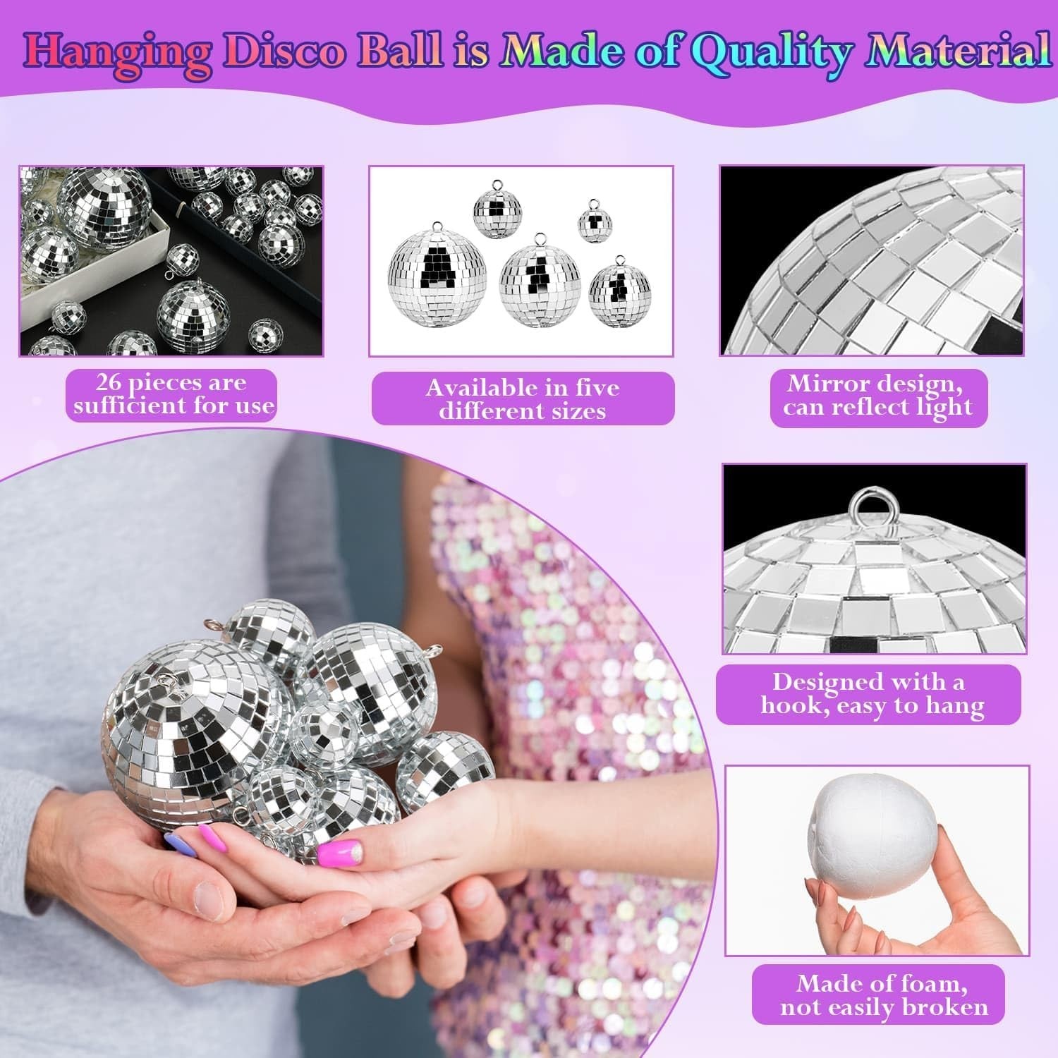 26 PCS Disco Ball, 5 Sizes Disco Ball Ornaments Mini Mirror Silver Disco Balls C