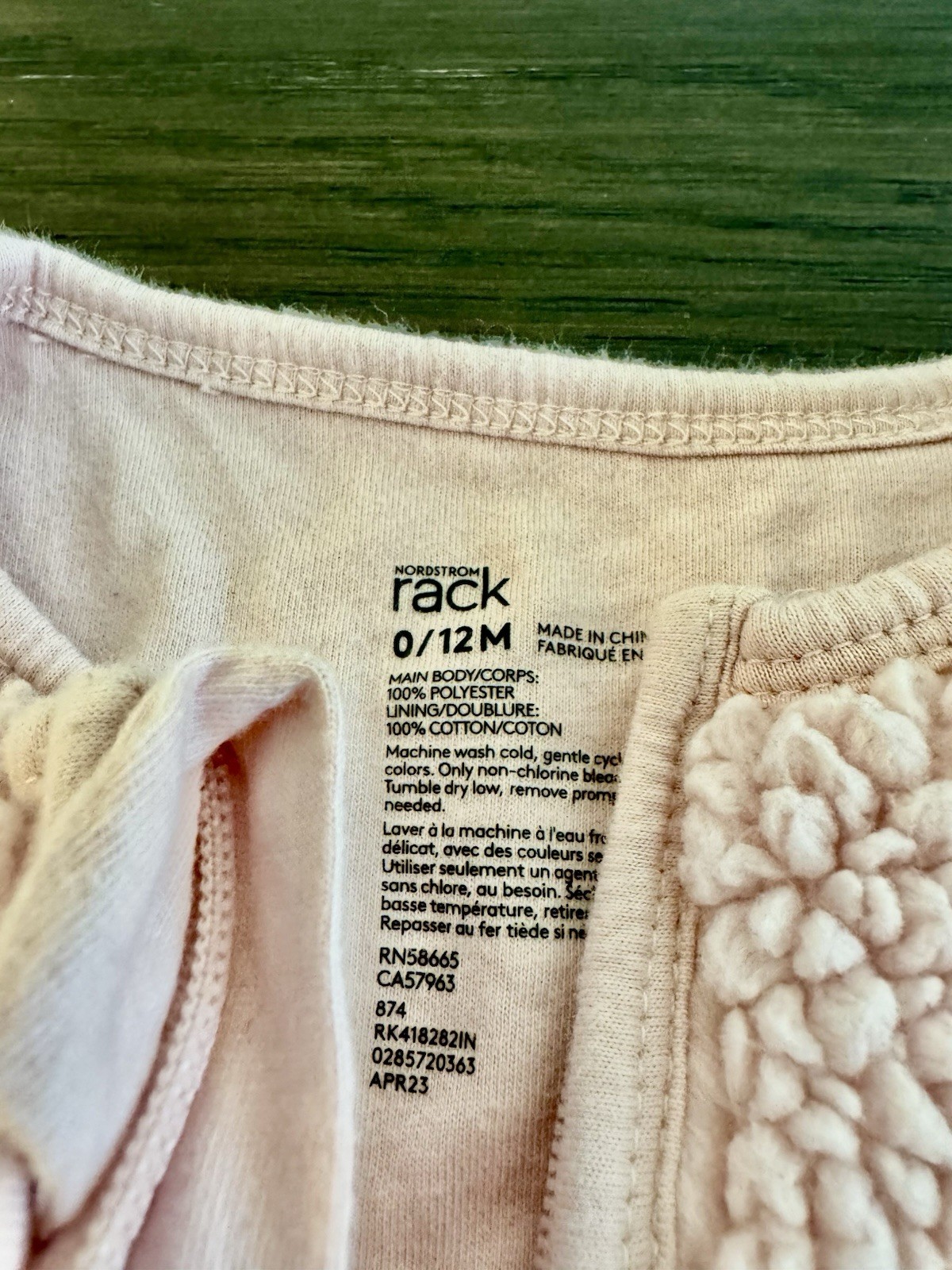 NORDSTROM Baby Fleece Wearable Blanket Sleepsack Light Pink 0-12 Mos. Front Zip