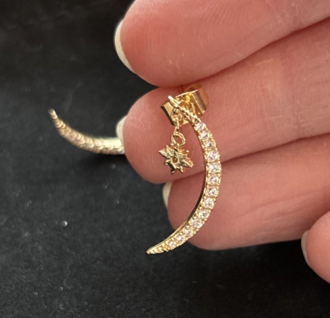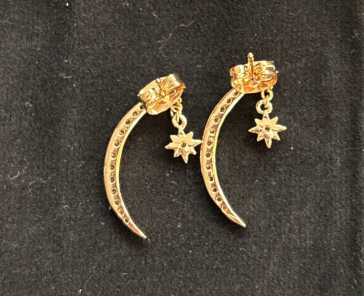как выглядит Moon Star Rose Gold Plated Stud Earrings Cubic Zirconia Stones фото