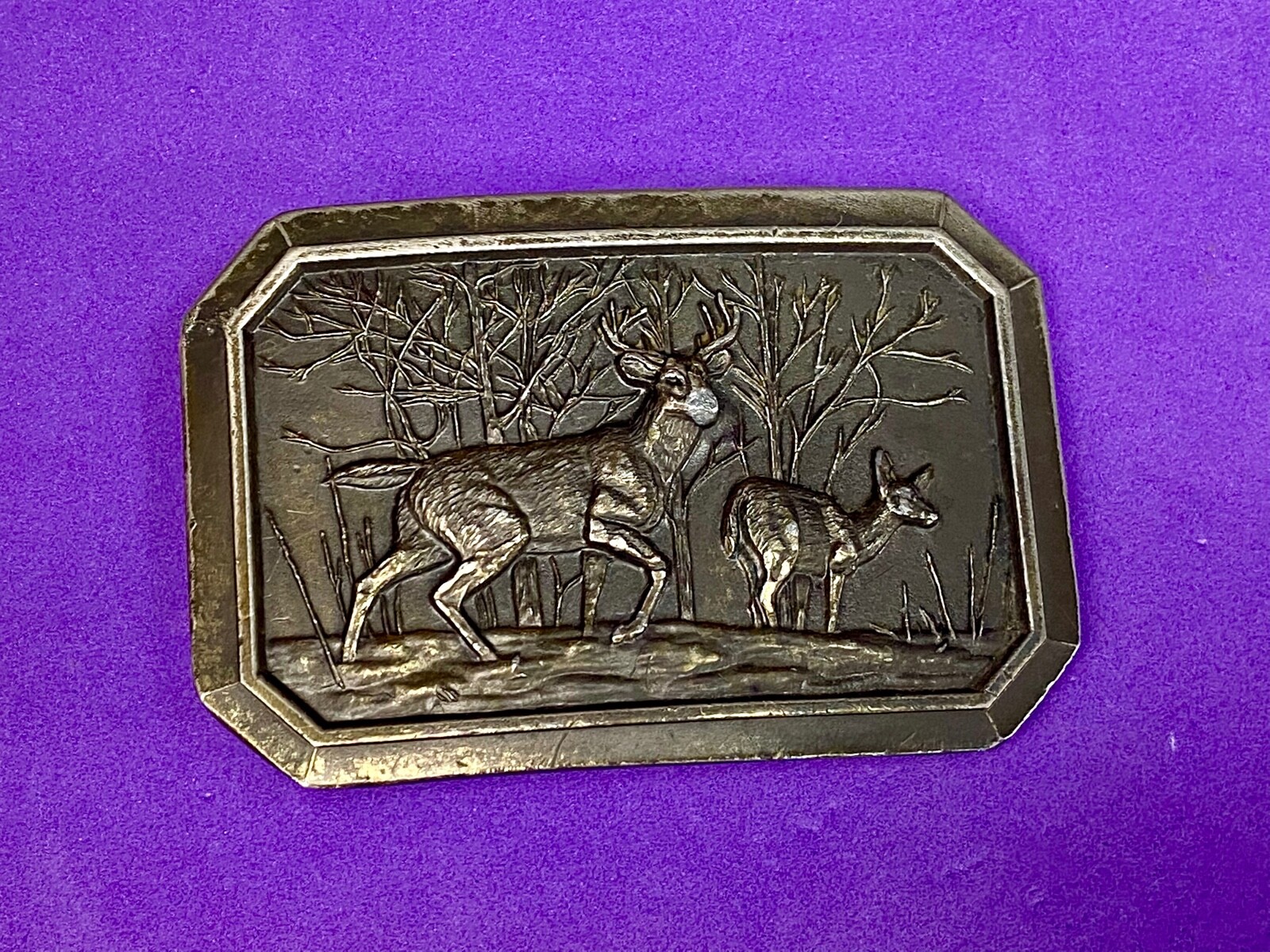 1976 The Deer In Nature Hunters - Great American Belt Buckle Co