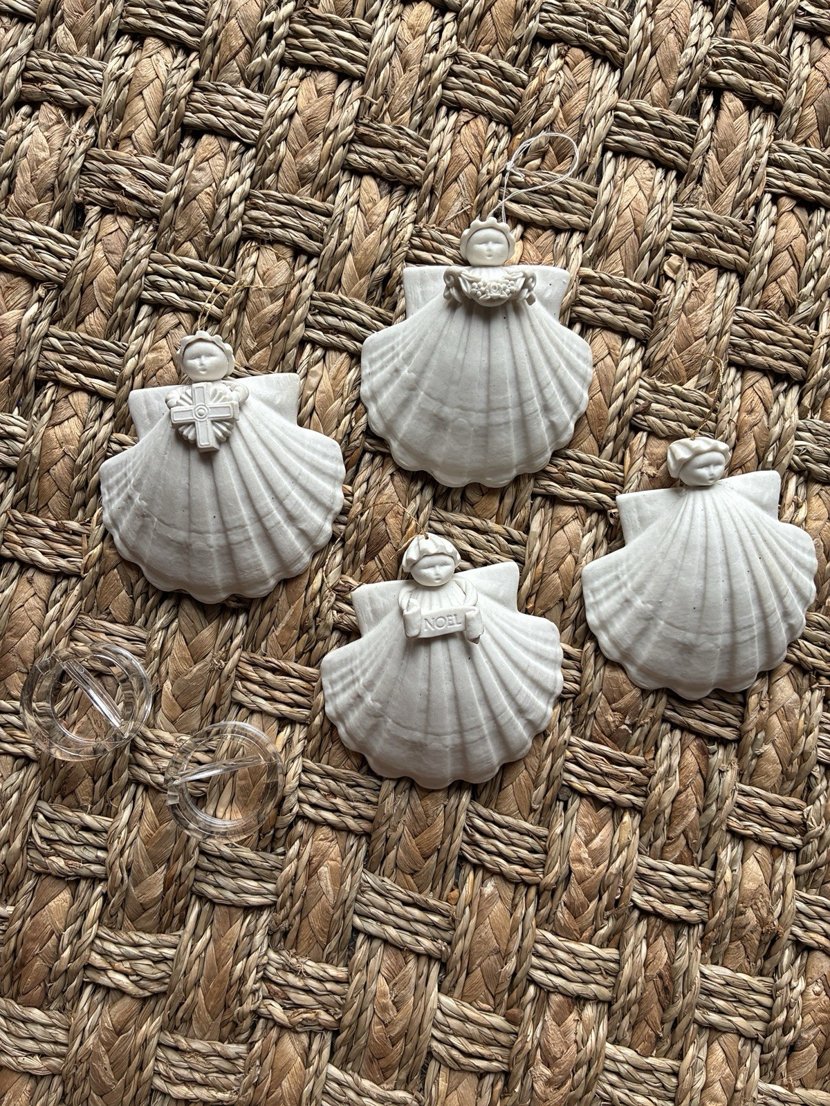 • Lot of 4 MARGARET FURLONG Shell Angel Christmas Ornaments 1990, 1992, 1993, 1995