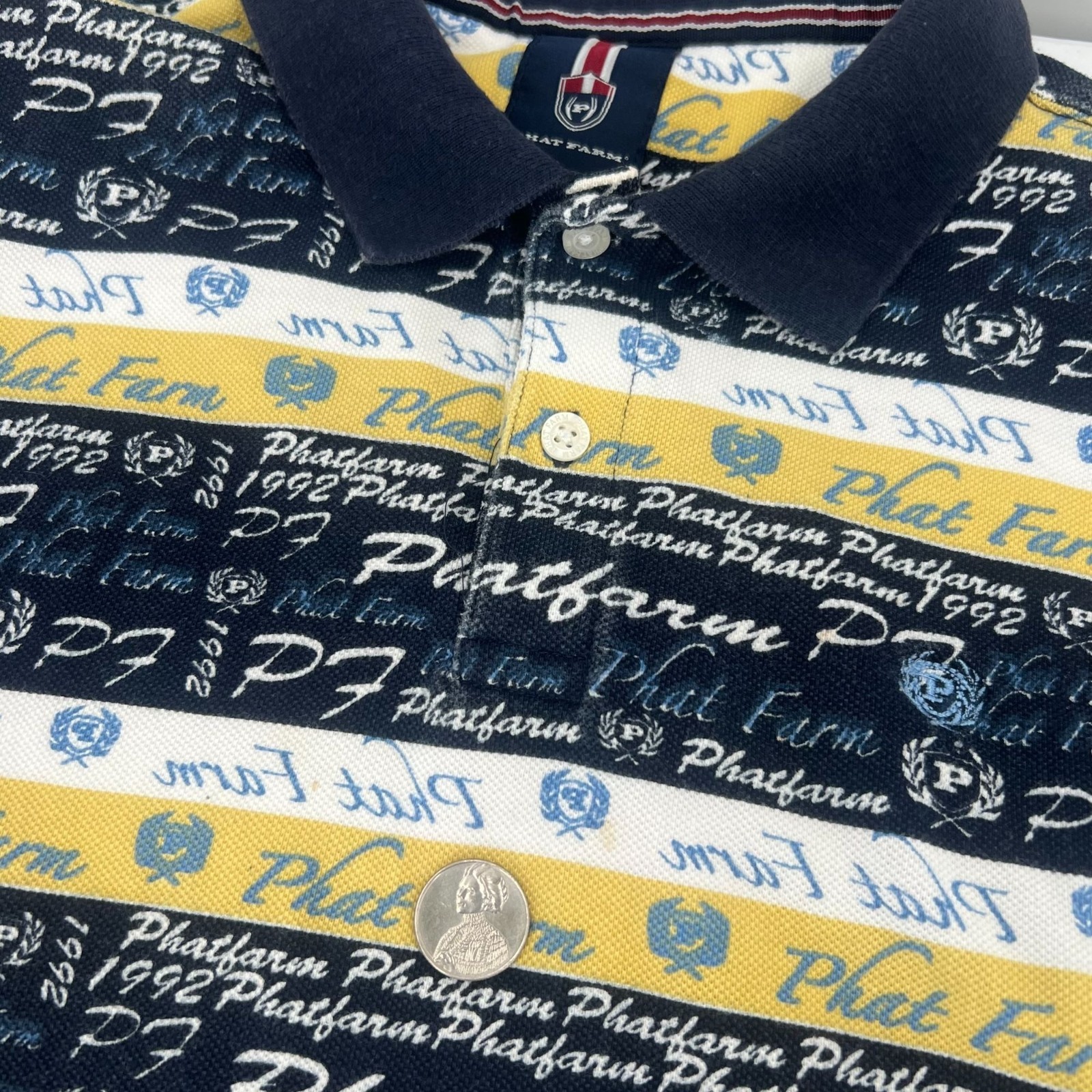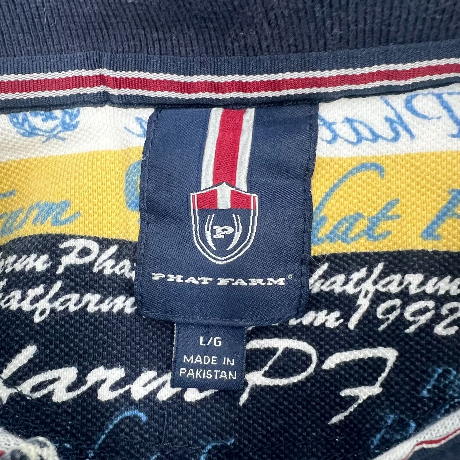 Phat Farm Polo Shirt Men's L Large Vintage Y2K Hip Hop AOP Graphic 100 Cotton