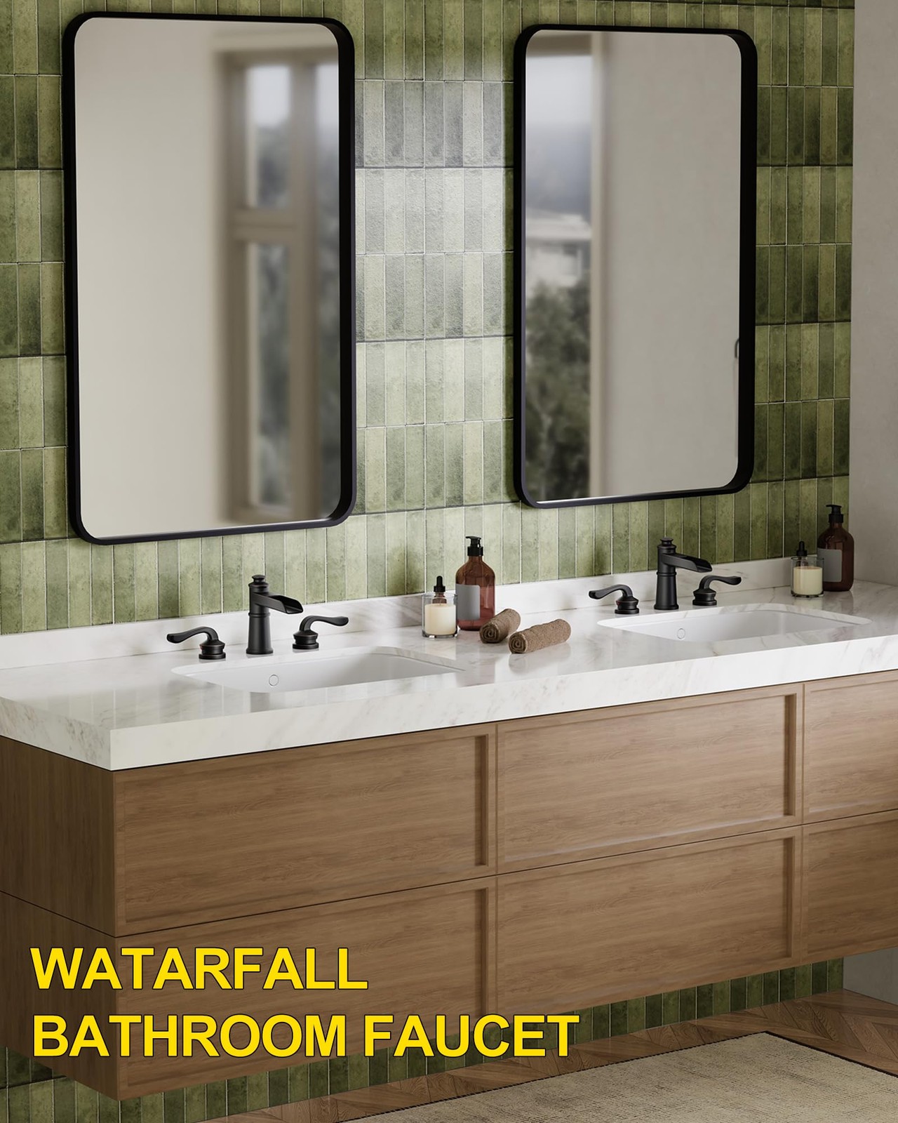 Widespread Bathroom Faucet Oil Rubbed Bronze Waterfall 2-Handle with Pop up D...