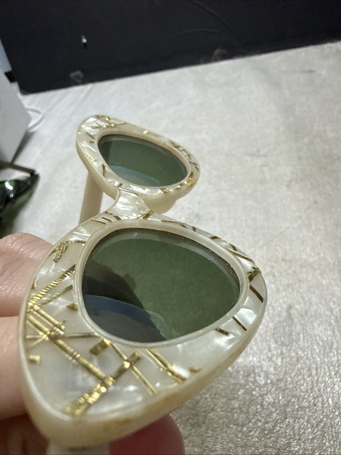 как выглядит Vintage Cat Eye Cool Ray Polaroid Sunglasses Ivory With Gold Accents MD. USA фото