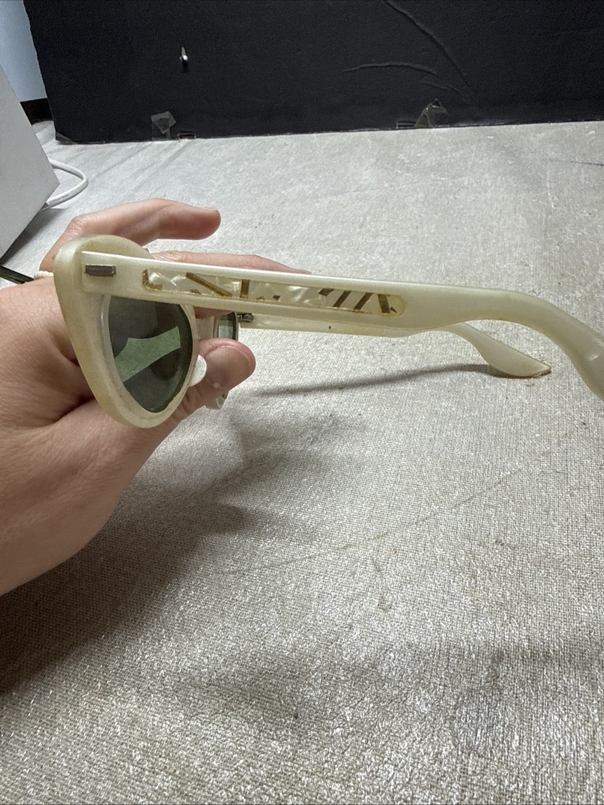 Vintage Cat Eye Cool Ray Polaroid Sunglasses Ivory With Gold Accents MD. USA