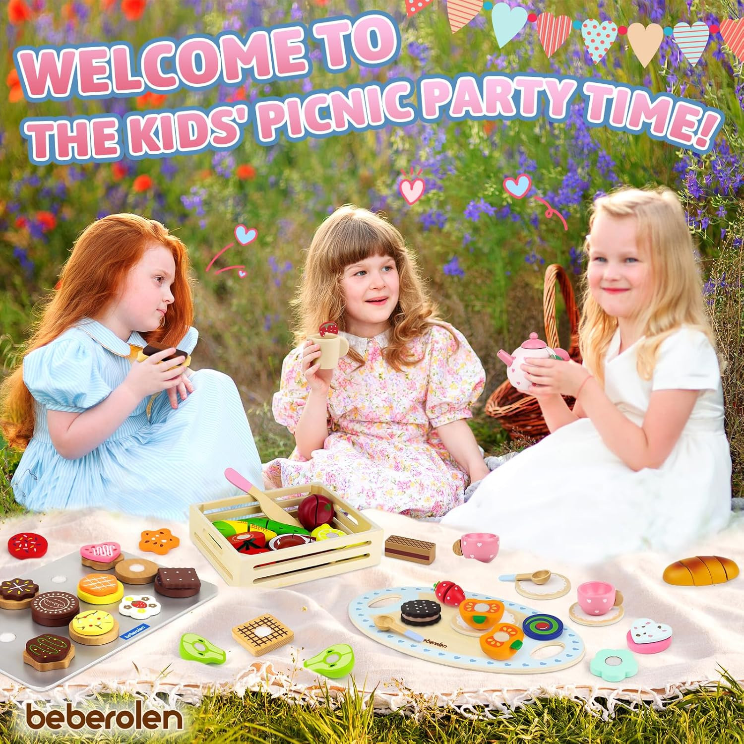 как выглядит Wooden Tea Set for Little Girls Birthday Gift Kid Princess Toys Play Food Sets фото