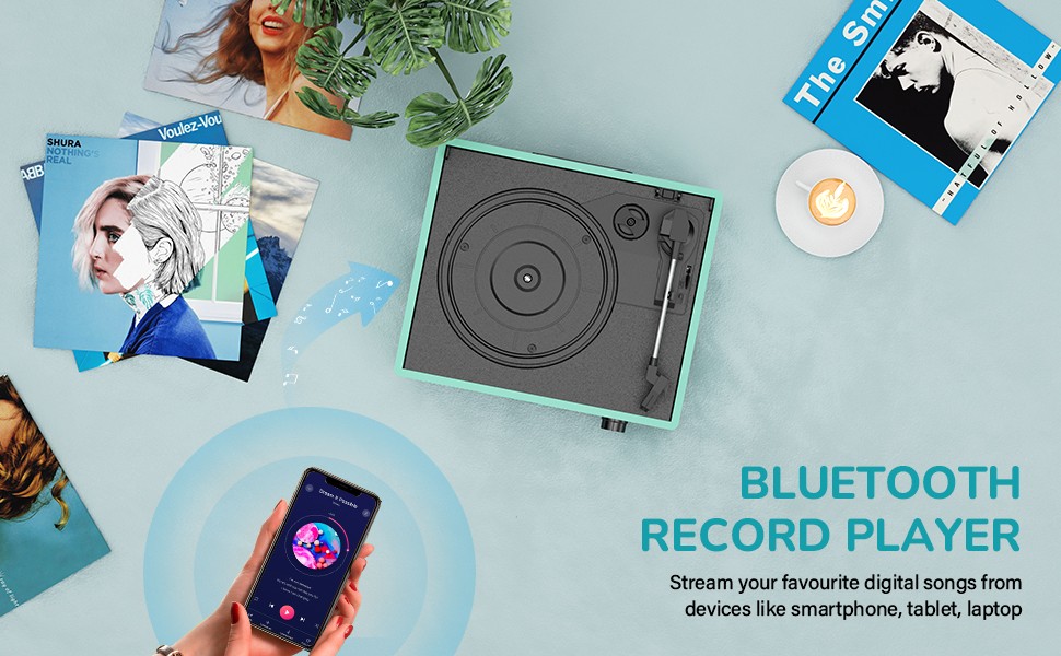 Model Name: Vintage Vinyl Record Player Cyan Color