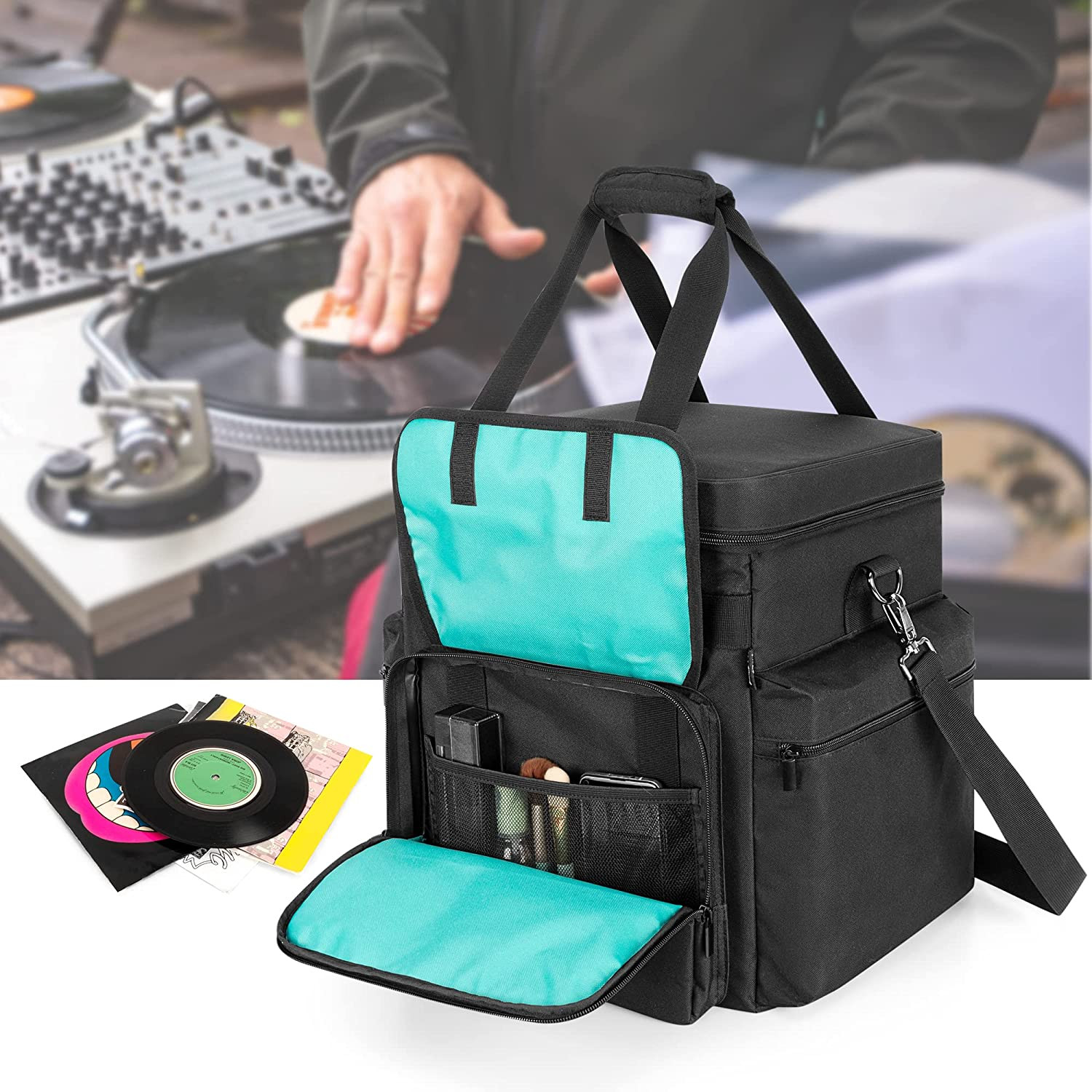 Vinyl Record Storage Bag, Holds 60 LP Records Travel Album Carrying Case BLACK