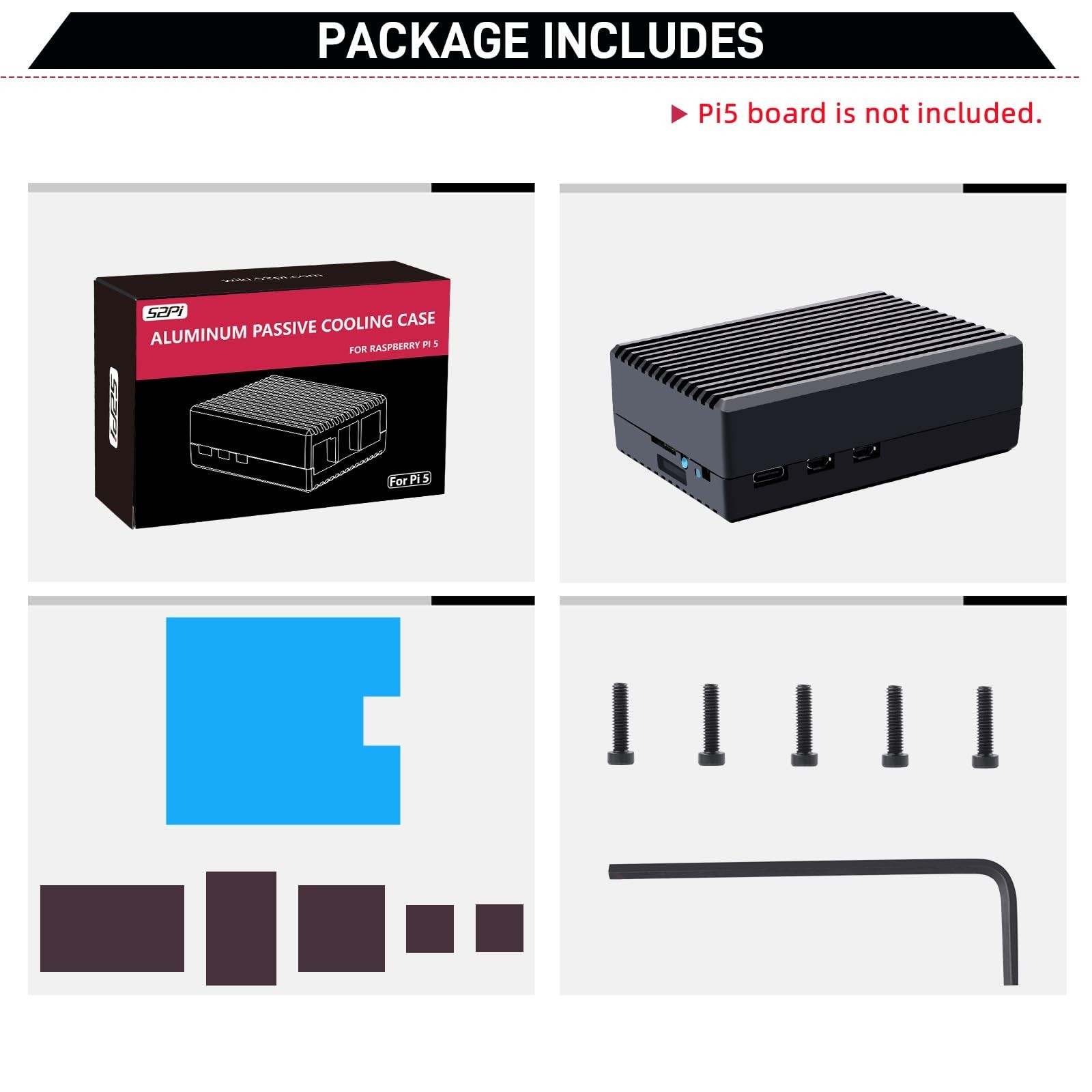 GeeekPi Aluminum Case for Raspberry Pi 5, Passive Cooling Black,