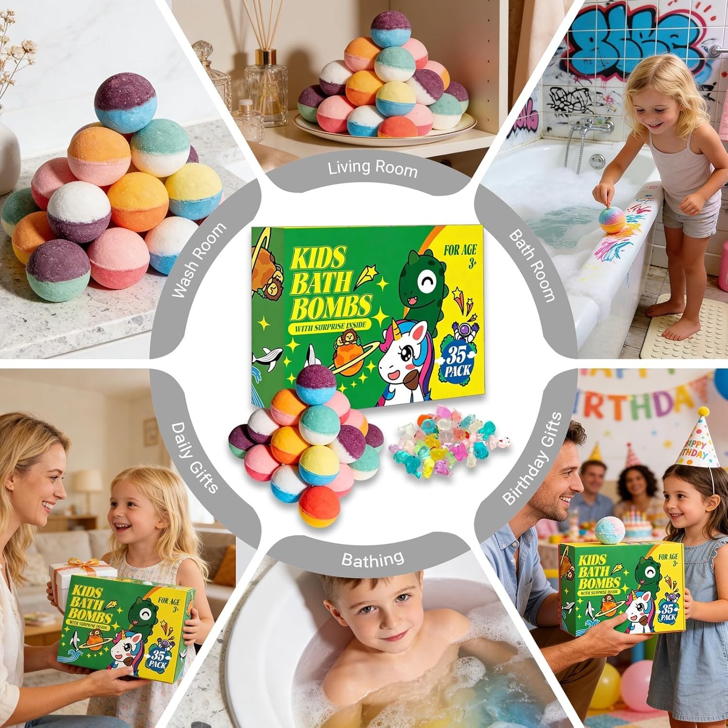 Kids Bath Bombs Gift Set - 35 Colorful Fizzies with Surprise Animal Toys Inside