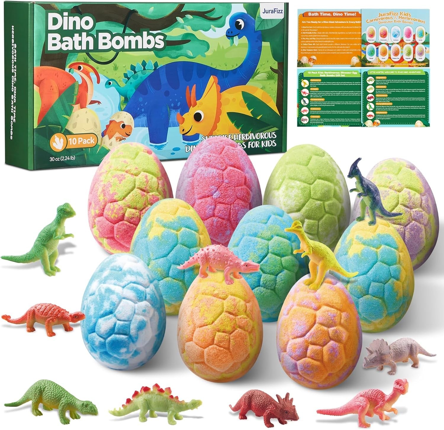 Educational Dinosaur Bath Bomb Set - 10 Natural Bath Bombs Surprise Toys