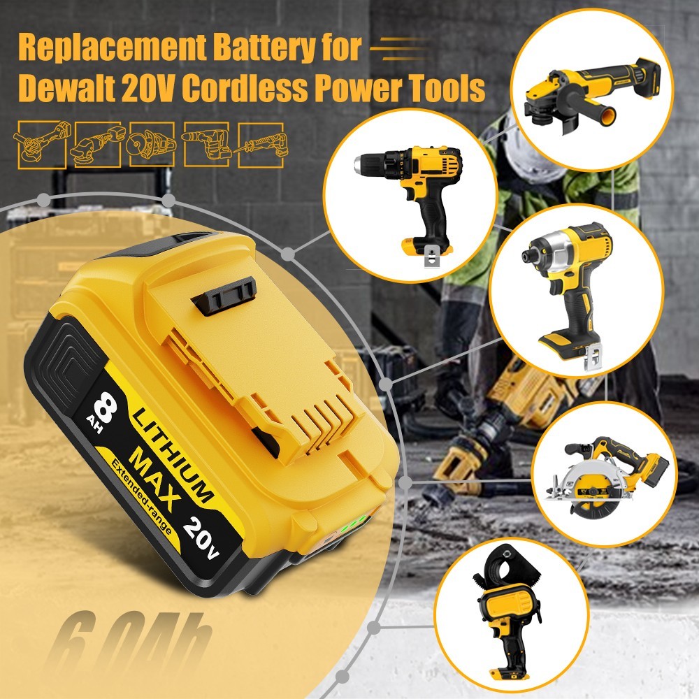 2Pack 8.0AH Lithium Ion Battery For DeWalt 20V 20 Volt Max DCB206 DCB200 DCB204
