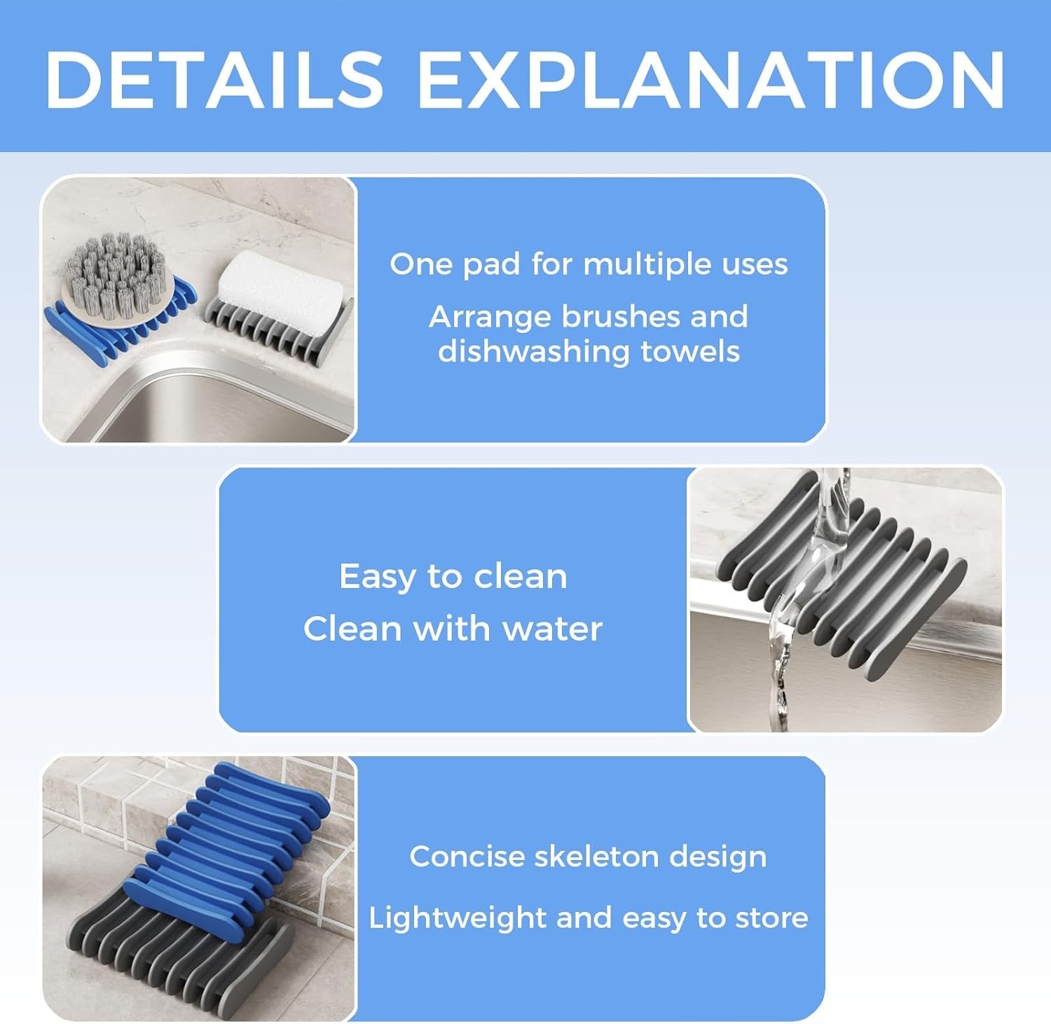 как выглядит 3PCS Draining Soap Dishes, Dishwashing Sponge Holder with Water Tray фото