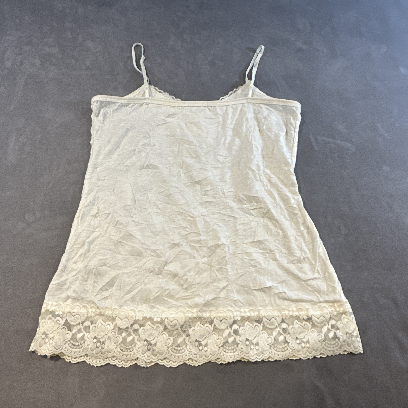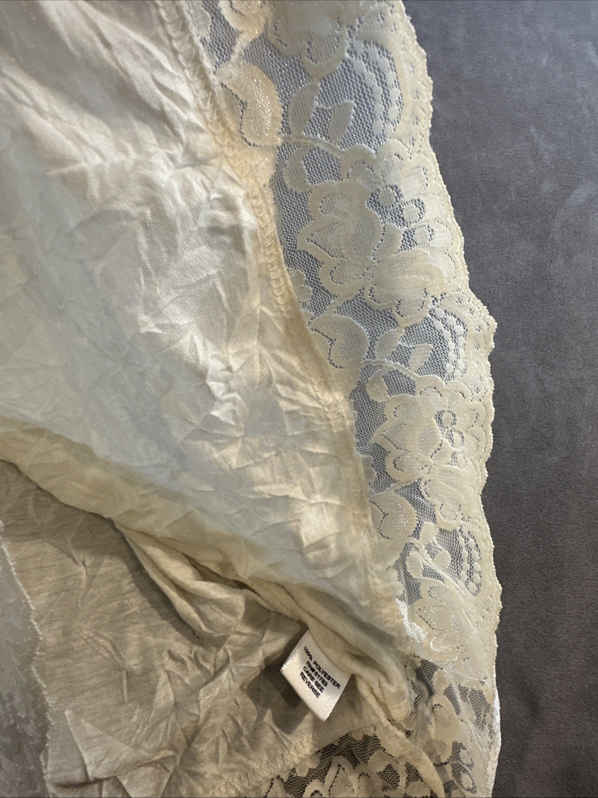 Y2K Babydoll Coquette Fairy Romantic Lace Trim Cami Layering Tank Ivory Crinkle