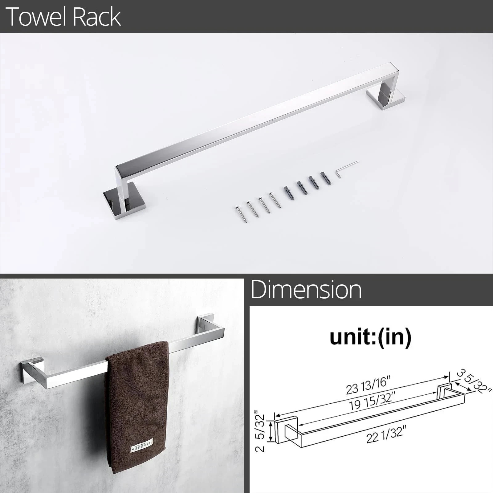 как выглядит Towel Bar Set 5-Piece Silver Bathroom Hardware Towel Rack Set Wall Mounte Bar фото