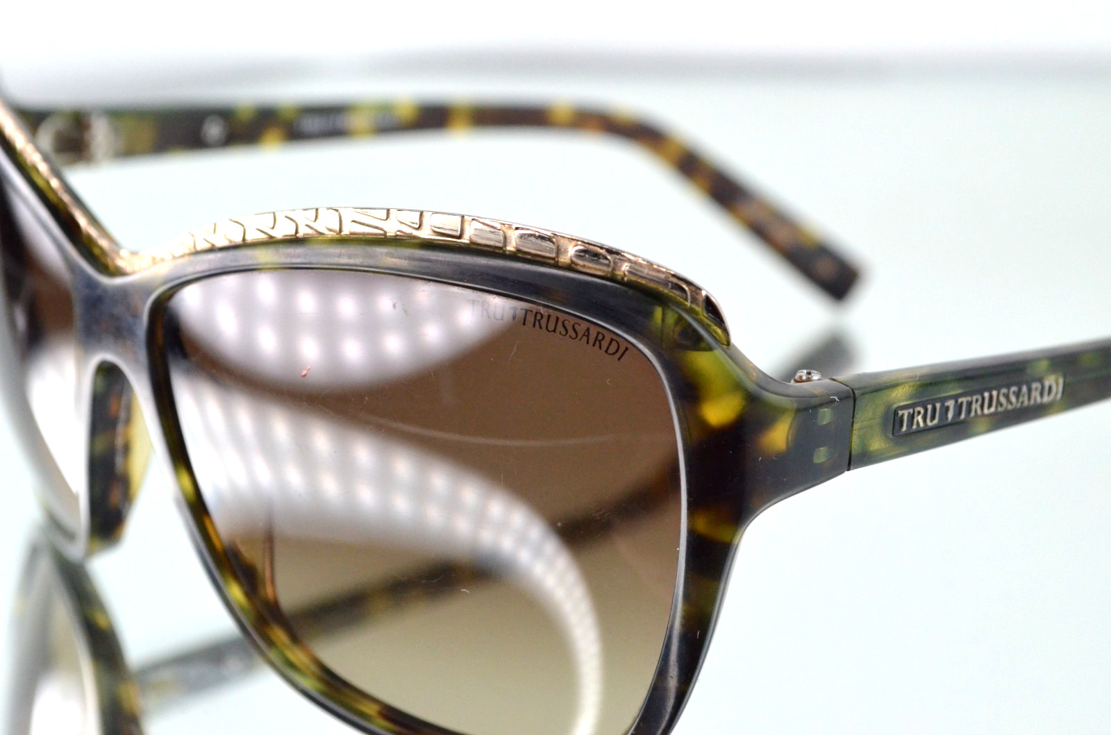 как выглядит RARE Trussardi Vintage Butterfly Sunglasses Green Tortoise/Gold TR12806 фото